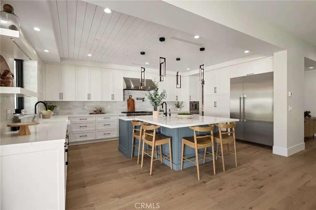 This newly constructed masterpiece in Manhattan Beach offers 6 bedrooms, 6.5 bathrooms, and a dedicated office across 4,666 square feet of luxurious living space on a 7,500-square-foot lot. Designed with an open floor plan, this home is perfect for modern living, featuring a chefs kitchen with quartz countertops, a bar top, a spacious island that opens to the living room, and a high-end Thermador appliance package, including a wine fridge and ice maker. A walk-in pantry with a wine wall adds both style and functionality. The primary suite is a true retreat, boasting a soaking tub and a private balcony, while the large sliding glass door in the living room creates seamless indoor-outdoor living, leading to an expansive backyard with a turf putting green. Additional highlights include a dry bar, recessed lighting throughout, fireplaces in both the living room and outdoor patio, an individual laundry room, and a 3-car garage. Located just minutes from award-winning Mira Costa High School, this home is a rare blend of elegance, comfort, and convenience in the heart of Manhattan Beach.