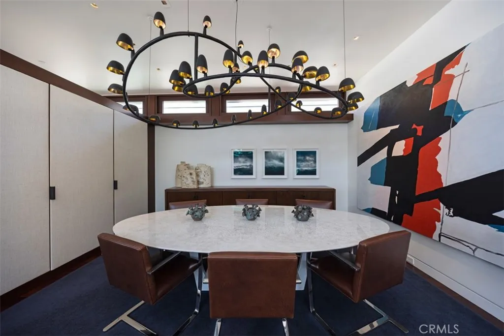 An exceptional architectural achievement by KAA Design and Matt Morris Development. Set along the iconic Manhattan Beach Strand, this remarkable residence overlooks one of the worlds most prestigious beaches with panoramic views from Palos Verdes to Malibu. A mahogany-clad circular staircase makes a dramatic first impression, linking the middle-level entry to the top-floor living spaces, while four levels of soaring 10-foot ceilings and floor-to-ceiling windows and doors bathe the home in natural light. Unique to the Strand, this estate offers bedrooms on all four levels. The top-floor outdoor living and dining area offers sweeping ocean views and uncommon privacy from the beach below, enhanced by bronze folding louvered panels that control light and protect the space from the elements. The west side features a beach room with an impressive bar, bronze shelving, lounge area, and pool table, while the east side includes a fully equipped gym and spa retreat. The level below offers a home theater, additional living area, wine cellar, and tasting room. With a striking beachfront faade framed by four two-story mahogany masts, the home preserves ocean views while providing privacy for the primary suite and Strand-level beach room. This extraordinary residence captures the essence of luxury Strand living.