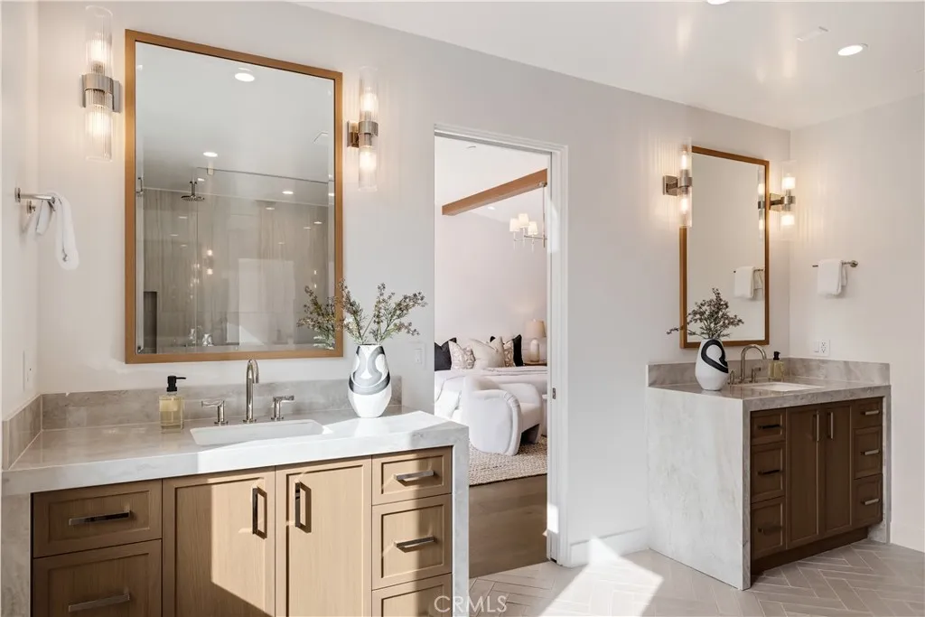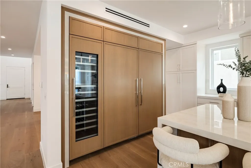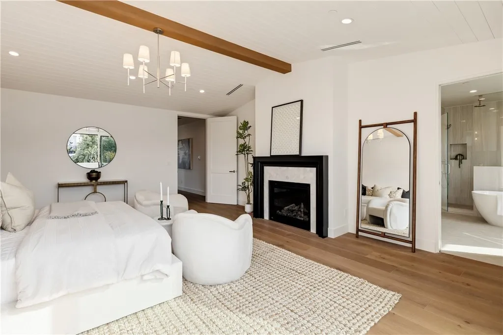 This stunning new construction California Modern Farmhouse style home, in the highly desirable hill section of Manhattan Beach, offers 6 bedrooms, each with its own ensuite bathroom, and 7 baths, designed with an open floor plan perfect for entertaining. The grand entrance with soaring ceilings sets the stage for luxurious coastal living, leading to an open kitchen featuring Premium Thermador appliances including a 48-inch 6-burner gas range with double ovens, 36 refrigerator / 36 freezer, 24 built-in wine column and an oversized island ideal for gatherings. Custom built-in cabinetry enhances the living and entertaining areas, with ample natural lighting, and Fleetwood sliding double glass doors leading you to the outdoor fireplace, to create a seamless indoor-outdoor flow. Upper level boasts 4 bedrooms with ensuite bathrooms and a large laundry room, with an included Electrolux washer / dryer package. The primary suite is a true retreat, with a sundrenched private balcony, and boasting dual walk-in closetsone a full walkthroughleading to a spa-like bathroom featuring Newport Brass plumbing fixtures, including dual waterfall showerheads, a standalone soaking tub, and dual vanities. In the basement, a bonus downstairs entertainment area with built in wet bar and beverage center, an additional bedroom and ensuite bath, mudroom with built in custom cabinets, storage room, attached garage, and an elevator connecting all levels, add to the homes convenience and sophistication. Additional home features include a 4.4 kW solar power system, central vacuum, three zone A/C, 2 tankles