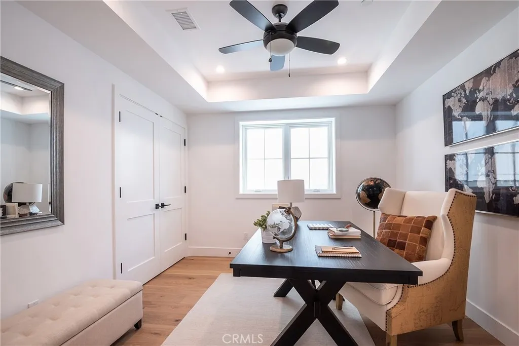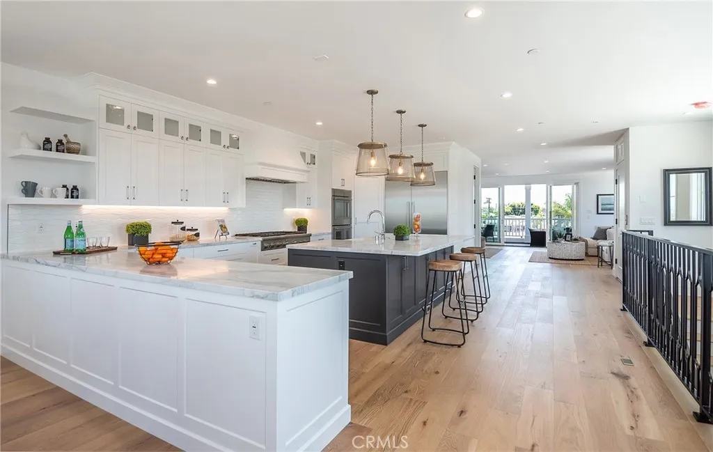 A stunning Coastal Plantation home in the heart of Manhattan beach! Enter through the charming dutch door featuring a guest bedroom, office/ secondary bedroom and a spacious media room. French oak hardwood floors sweep across the open concept floor plan filled with natural light. The second floor features a master suite with an ensuite bathroom and walk in closet, along with three additional bedrooms with own ensuite bathrooms and a laundry room. Take the 3 stop elevator to the top level where the open floor concept enjoys sweeping city and ocean views. Perfect for entertaining, the chef's kitchen features calcutta countertops, top of the line Thermador appliances and exquisite finishes. Relax & enjoy the sunset on the spacious balcony that blend indoor & outdoor spaces. Close proximity to all the amenities that downtown Manhattan Beach offers, award winning schools and so much more!