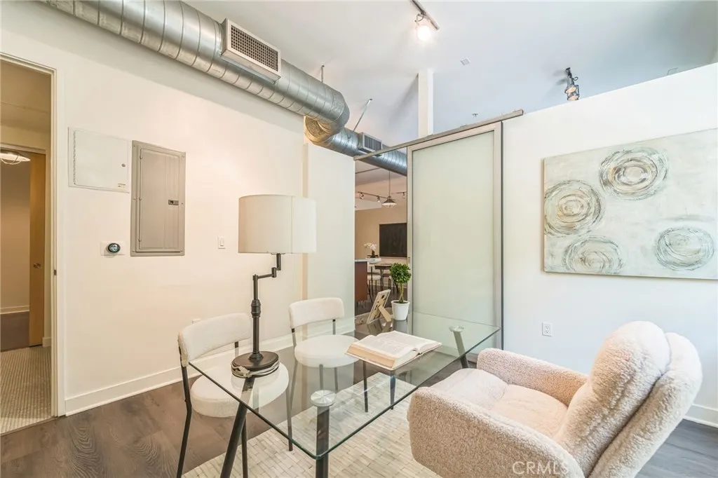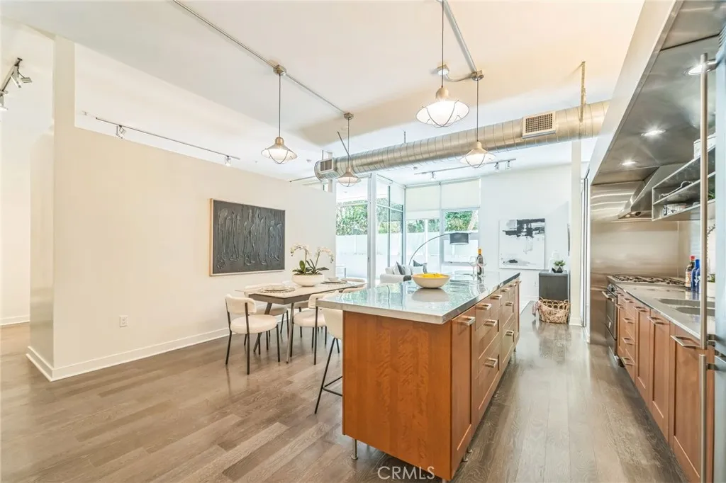 Rarely available GROUND FLOOR 2 plus 2 unit in the vibrant Gallery Arts Community located in the heart of the Marina Del Rey Arts District. No need for elevators to enter this modern industrial style loft offering an open floorplan. Full volume 11ft. ceilings, floor to ceiling picture windows and providing plenty of natural light with a view toward the Courtyard trees and greenery views. The open concept kitchen is fully equipped with European Stainless Steel appliances and a huge SS Island with all modern finishes. The open floor plan flows seamlessly between living and dining areas into a large covered patio perfect for al fresco dining in a private setting. The primary suite offers a huge walk in closet with cedar lined drawers, a luxurious end suite bath with soaking tub and separate glass enclosed shower. Controlled access security building, subterranean garage with 2 car tandem parking and ample guest parking, EV charging stations. HOA amenities include a lovely open Courtyard with outdoor BBQ and Fire pit seating area. The location is just steps away from the Marina Marketplace, with a vibrant mix of restaurants, Cafes and Boutique shopping and every amenity imaginable. I mile to the beach and 12 minutes to LAX. Enjoy the lifestyle!