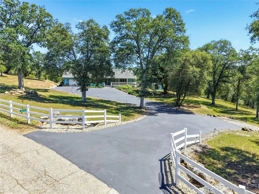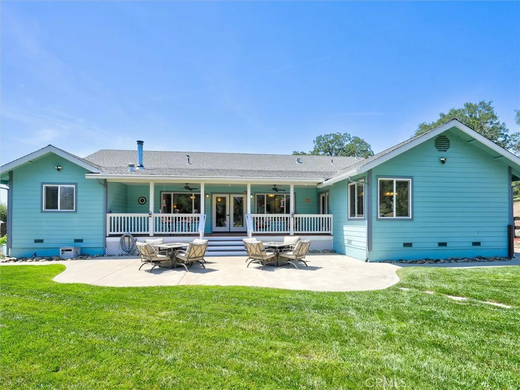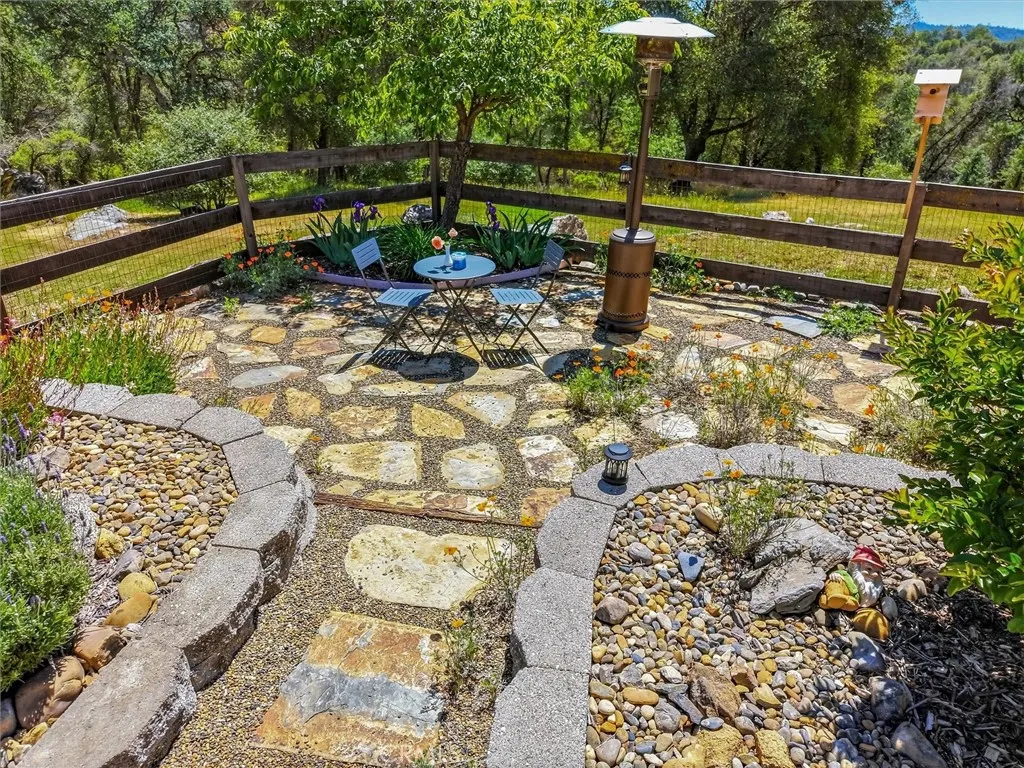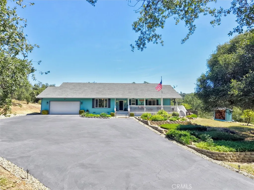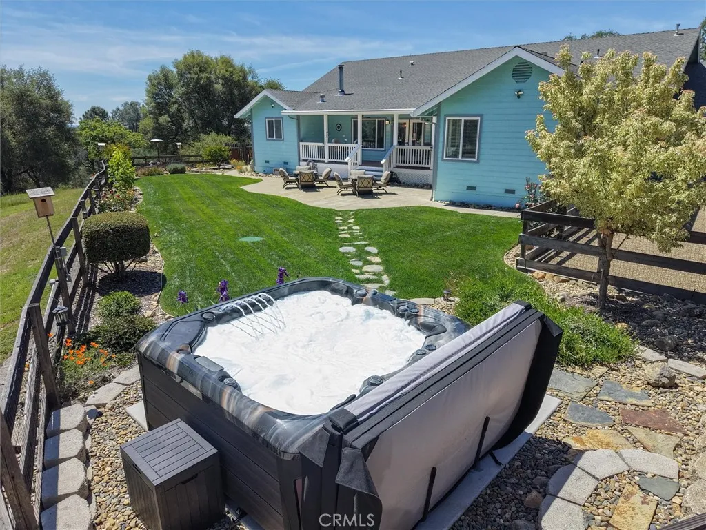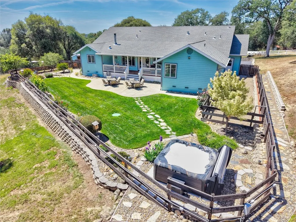 Tucked away on a peaceful court, this thoughtfully designed single-level home offers the perfect blend of comfort, efficiency, and natural beauty-ideal for those looking to enjoy a relaxed retirement lifestyle. Built with quality 2x6 construction and engineered I-beams, the home provides exceptional energy efficiency year-round, complemented by dual-zone heating and cooling and a cozy wood-burning stove for added warmth and ambiance. Designed with both relaxation and entertaining in mind, the property features expansive covered front, rear, and side porches with rich redwood decking, ceiling fans, and a built-in sound system, along with a beautiful new hot tub area perfect for unwinding under the stars. The fully fenced 5+ acre property offers privacy and ease of use, with paved driveways and walkable land enhanced by gentle pathways throughout. Surrounded by quintessential California landscape and backing to a natural wildlife corridor, this inviting home is a true retreat-perfect for hosting family and friends or simply enjoying peaceful, everyday living. As an added value, with a full-price offer, the owner is willing to include most of the furniture and equipment needed for the property, making this an easy and seamless transition into your next chapter.