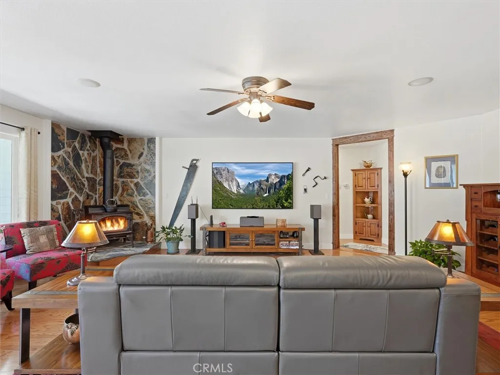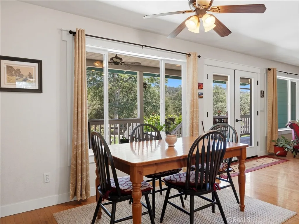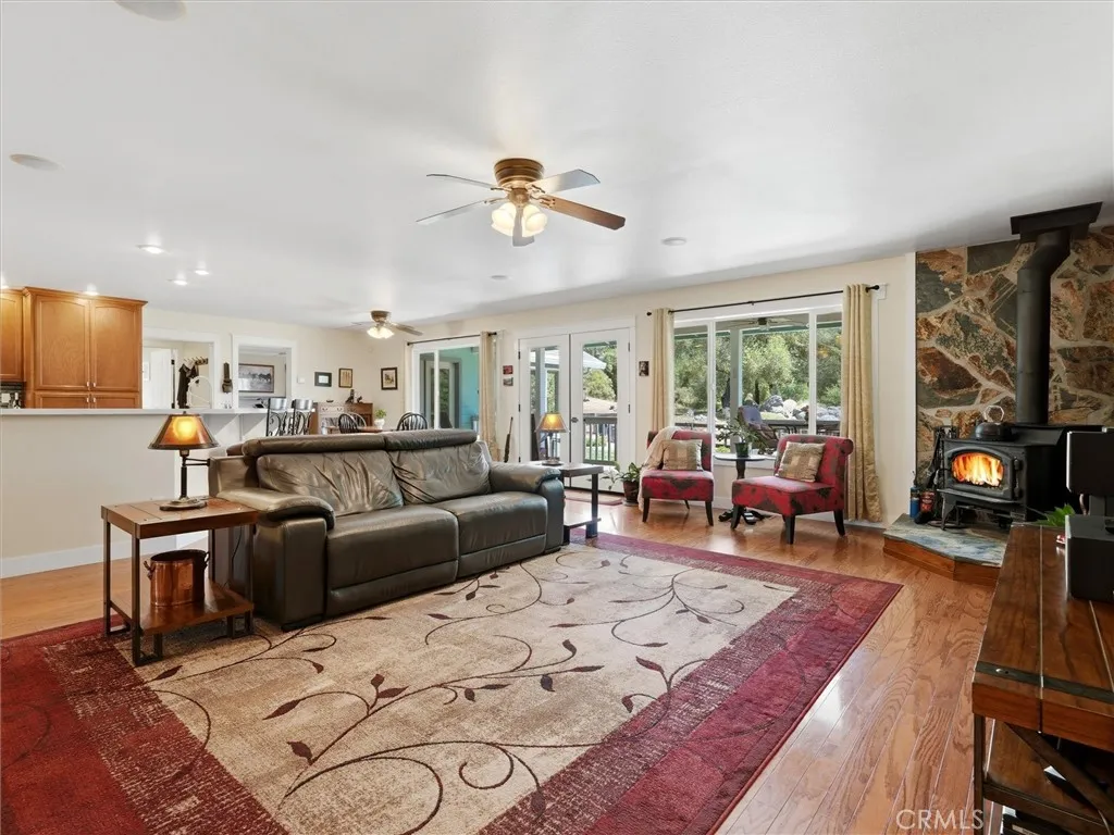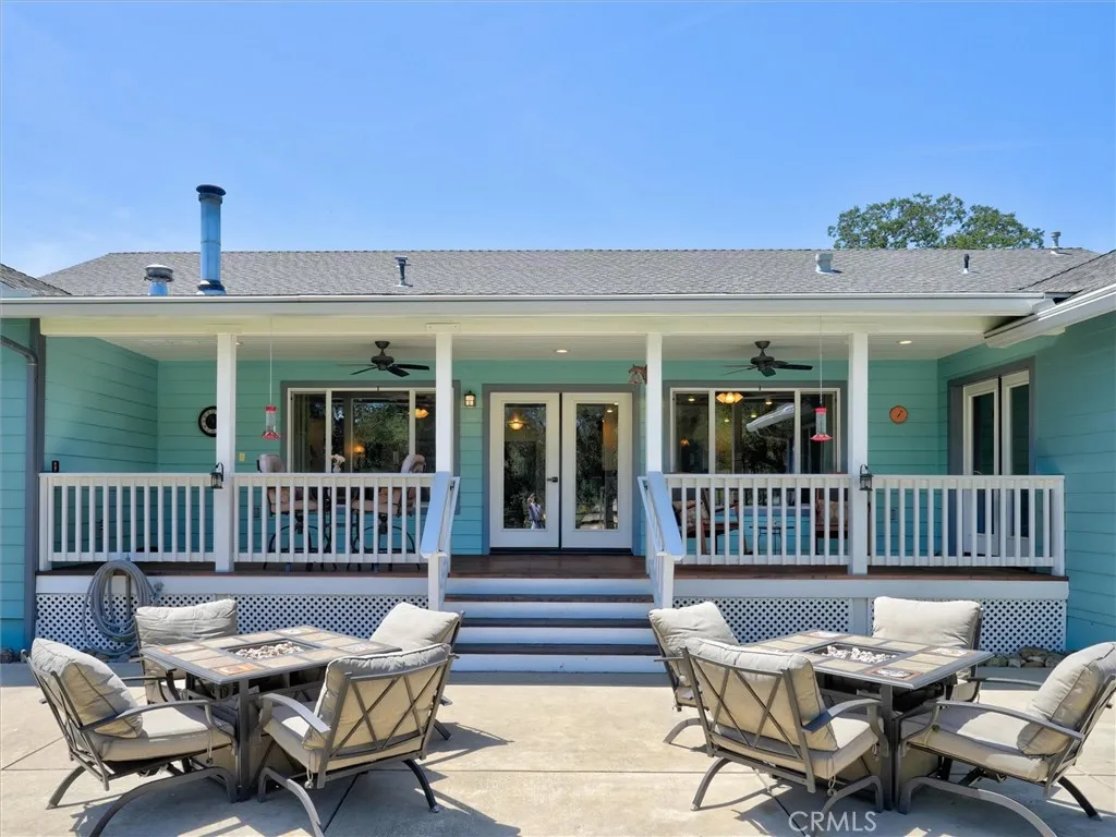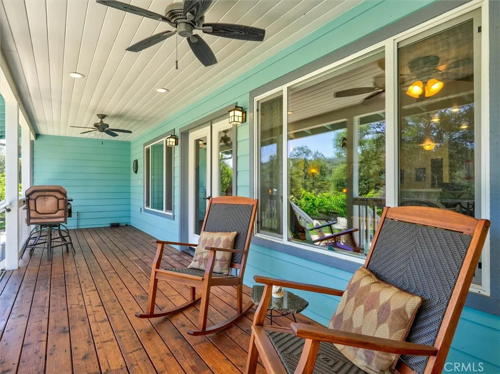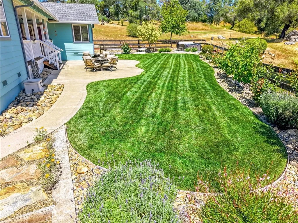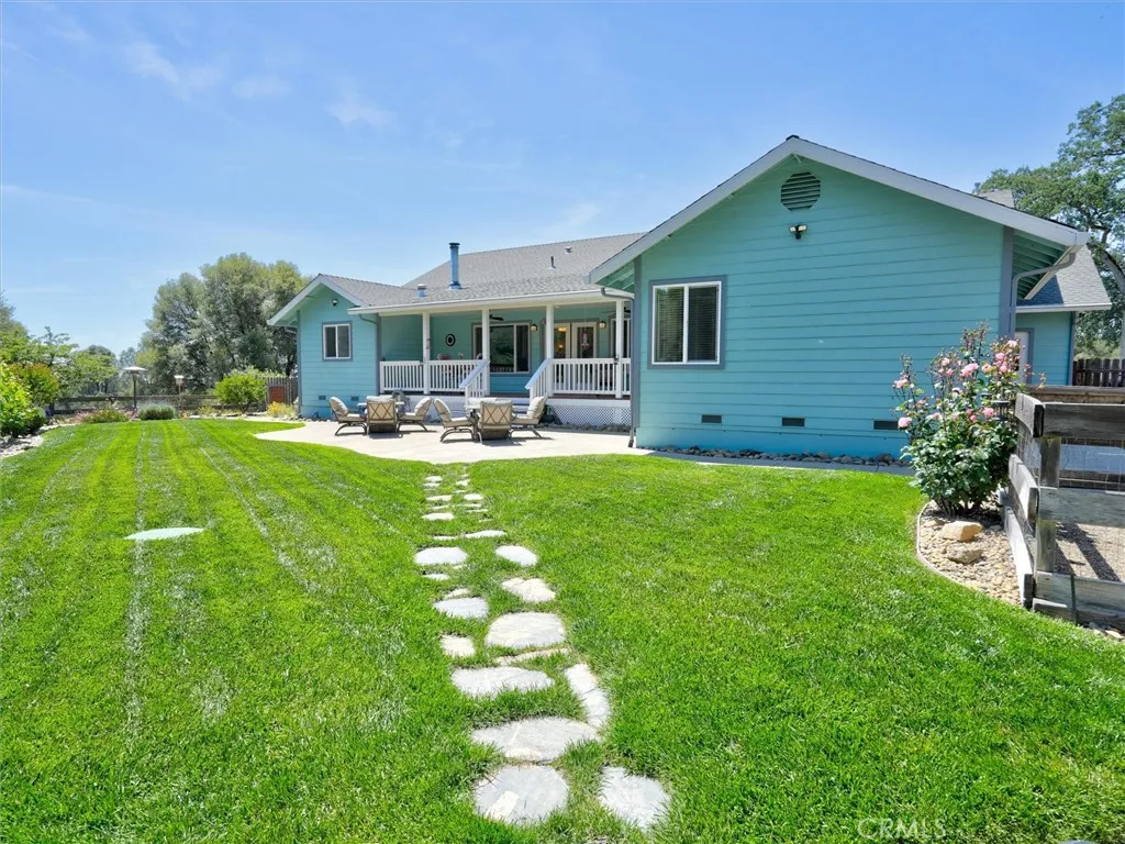 Tucked away on a peaceful court, this thoughtfully designed single-level home offers the perfect blend of comfort, efficiency, and natural beauty-ideal for those looking to enjoy a relaxed retirement lifestyle. Built with quality 2x6 construction and engineered I-beams, the home provides exceptional energy efficiency year-round, complemented by dual-zone heating and cooling and a cozy wood-burning stove for added warmth and ambiance. Designed with both relaxation and entertaining in mind, the property features expansive covered front, rear, and side porches with rich redwood decking, ceiling fans, and a built-in sound system, along with a beautiful new hot tub area perfect for unwinding under the stars. The fully fenced 5+ acre property offers privacy and ease of use, with paved driveways and walkable land enhanced by gentle pathways throughout. Surrounded by quintessential California landscape and backing to a natural wildlife corridor, this inviting home is a true retreat-perfect for hosting family and friends or simply enjoying peaceful, everyday living. As an added value, with a full-price offer, the owner is willing to include most of the furniture and equipment needed for the property, making this an easy and seamless transition into your next chapter.