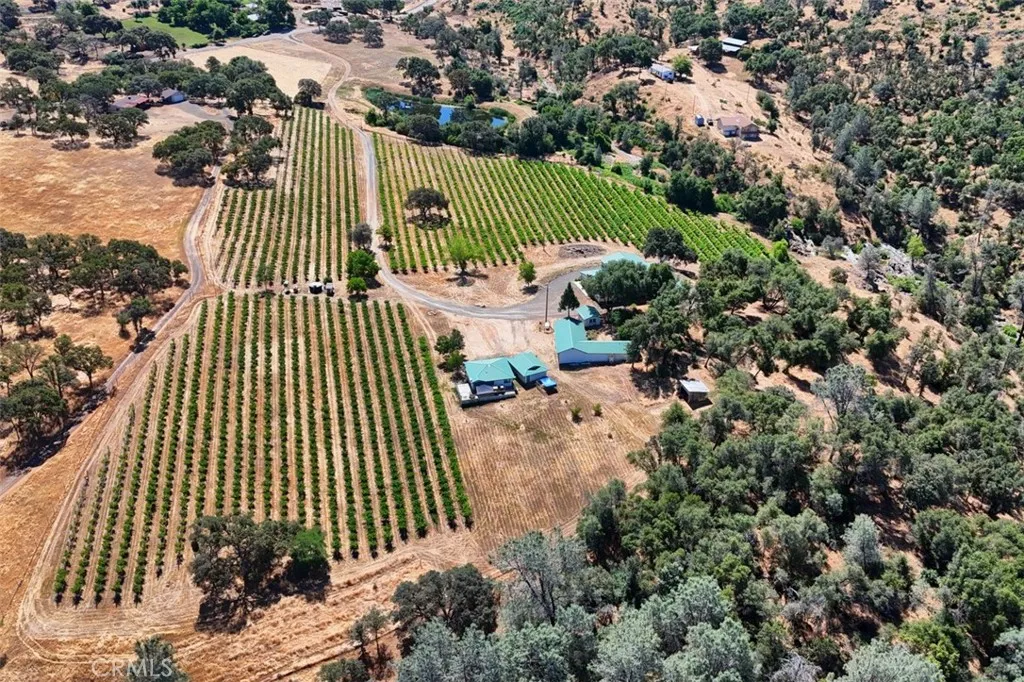 Experience the essence of refined Sierra Foothill living at the Lyons Vineyard Estate, a remarkable 28+ acre TWO HOME compound just 15 minutes from historic downtown Mariposa and less than an hour from the western entrance to Yosemite National Park. This rare property combines natural beauty, curated architecture, and established agricultural use which makes it perfectly appointed for a private retreat, boutique wine operation, or next-generation agri-luxury investment. At the heart of the property sits an elegant 5,188sf MAIN RESIDENCE, extensively remodeled in 2008 with travertine and hardwood flooring, granite countertops, and artisan finishes throughout. Negotiable in the sale are curated contents of exceptional taste, including Waterford chandeliers, fine artwork and classy furnishings, making this an unparalleled turn-key offering. A charming COTTAGE of 960sf consists of 2 bedrooms and 1 bath with a 600sf detached garage. A 704sf STUDIO-STYLE SPACE with bathroom is attached to a 4-car carport and would be ideal for conversion to a wine-country bunkhouse or Vintner's Unit. Eight acres of mature VINEYARD, four acres of Syrah and four acres of Cabernet Sauvignon, are professionally maintained and drip-irrigated via well-fed POND. Vineyard averages 2 tons per acre season to season and the harvest from this vineyard went into making the award-winning 2015 Syrah (Best of Class, SF Chronicle Wine Competition). The cellar is located in the main residence at basement level and includes storage for 1,820 bottles, wine stock also negotiable in the sale. For your outdoor enjoymen