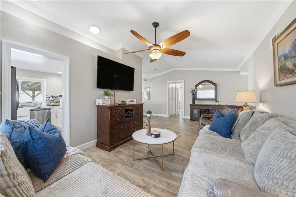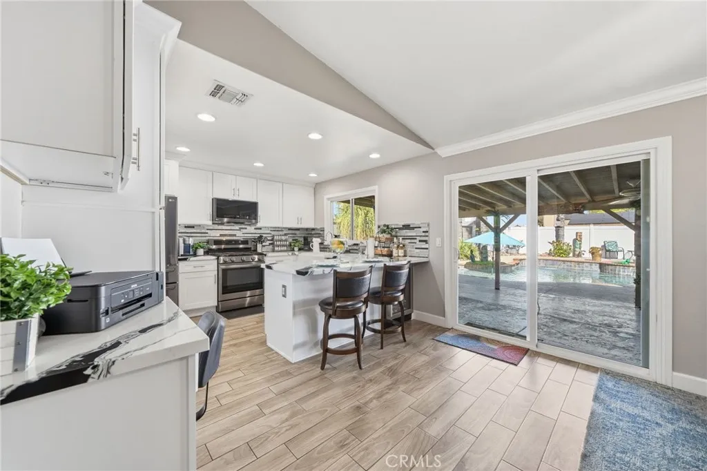 Are you searching for a home that is TURNKEY, with SOLAR, RV PARKING, LOW TAXES, and NO HOA? Look no further! This beautifully upgraded single-story pool home sits on a spacious corner lot in a highly sought-after neighborhood in Menifee. Inside, youll find a bright, open layout with new interior paint, ceramic tile flooring, and tasteful trim accents. The kitchen has been carefully remodeled and features modern soft-close cabinetry with pullouts, a farmhouse sink with glass rinser and soap dispenser, quartz countertops with matching backsplash, and all-new LG ThinQ stainless-steel smart appliances. This includes the stove with built-in air fryer, dishwasher, refrigerator, and beverage fridge. Energy efficiency meets peace of mind with a solar system featuring 39 solar panels, dual power inverters, and an upgraded newer electrical panel. Seller will pay off the solar with a full-price offer. Additional upgrades include a new Rheem water heater, whole-house fan, and smart Chamberlain MyQ garage door system with battery backup. Step outside to your own private backyard retreat, complete with a sparkling pool and spa, stamped and colored concrete patio, and new white vinyl fencing for added privacy. An upgraded vacuum system helps ensure year-round enjoyment. Added bonuses include ample RV parking with a 3 RV sewer clean-out for added convenience, custom security gates, and side access perfect for toys, trailers, or extra vehicles. This home offers the perfect blend of comfort, style, and convenience truly move-in ready with modern upgrades, energy savings, and that sought-aft