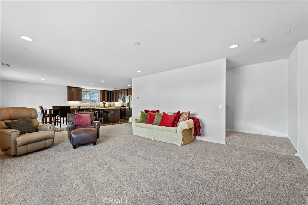 JUST IN TIME FOR THE HOLIDAYS! Exciting and rare opportunity to start your first or next chapter in the highly sought-after Heritage Lake community of Menifee. This property has literally NEVER been lived in, so you'll be moving into what amounts to a brand new home - it even smells new! Two stories and nearly 2200 sq ft of living space for your family to enjoy. Prime lot location situated on a cul-de-sac for extra privacy. No neighbors on the north side but instead you'll have your own personal entrance to the open park space with its trails and tranquility - all within steps of your front door! The home truly shows like a model. First floor features a den/office that can easily be converted into a bedroom, a half bath with upgraded flooring and fixtures, and a gourmet kitchen with oversized island, granite countertops, recessed lighting, and upgraded cabinets. Kitchen and adjacent dining area open up to the oversized great room/family room which makes for ideal entertaining. All flooring and carpet in the home are upgraded. Second floor boasts three spacious bedrooms, a loft/game room, two full baths, and an upgraded laundry room fully equipped with a sink and plenty of cabinet space. Master retreat provides a serene private space with its view of the backyard. The spa-like bath has an oversized tub and separate shower. Backyard is ready for your own personal touches, and has more than ample space for a pool, patio, bbq area, or even an ADU. So many options for activities are just steps away - parks, trails, and all the amenities of the Heritage Lake Association with its