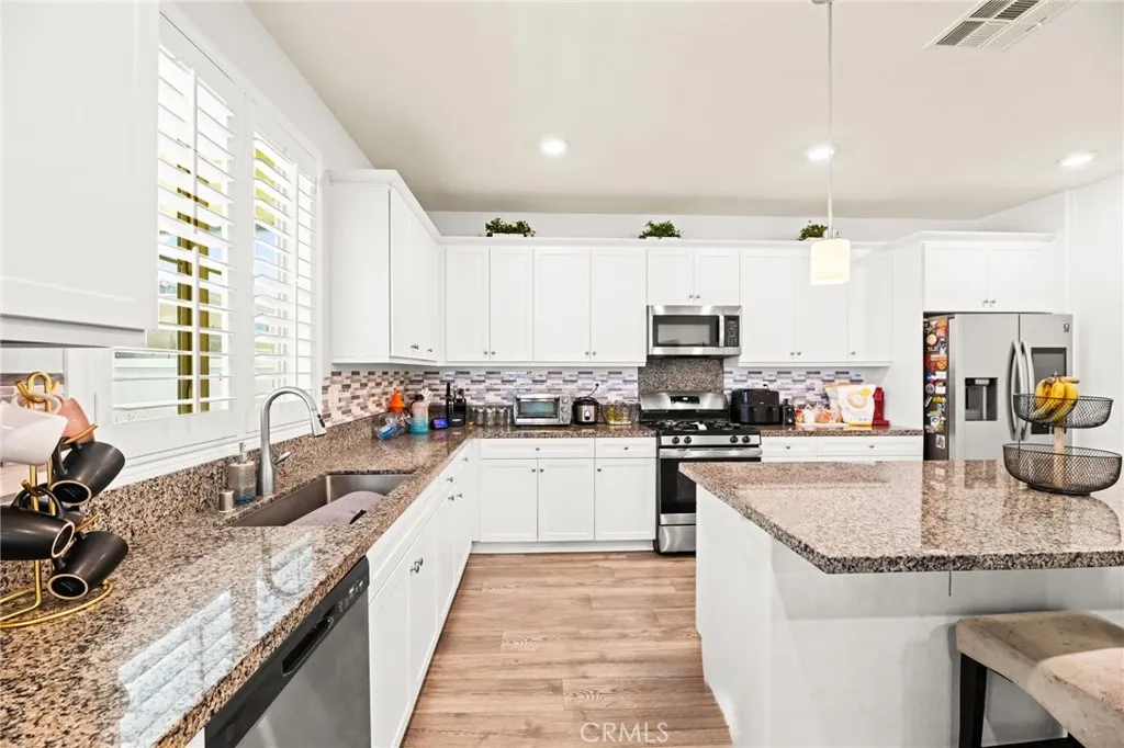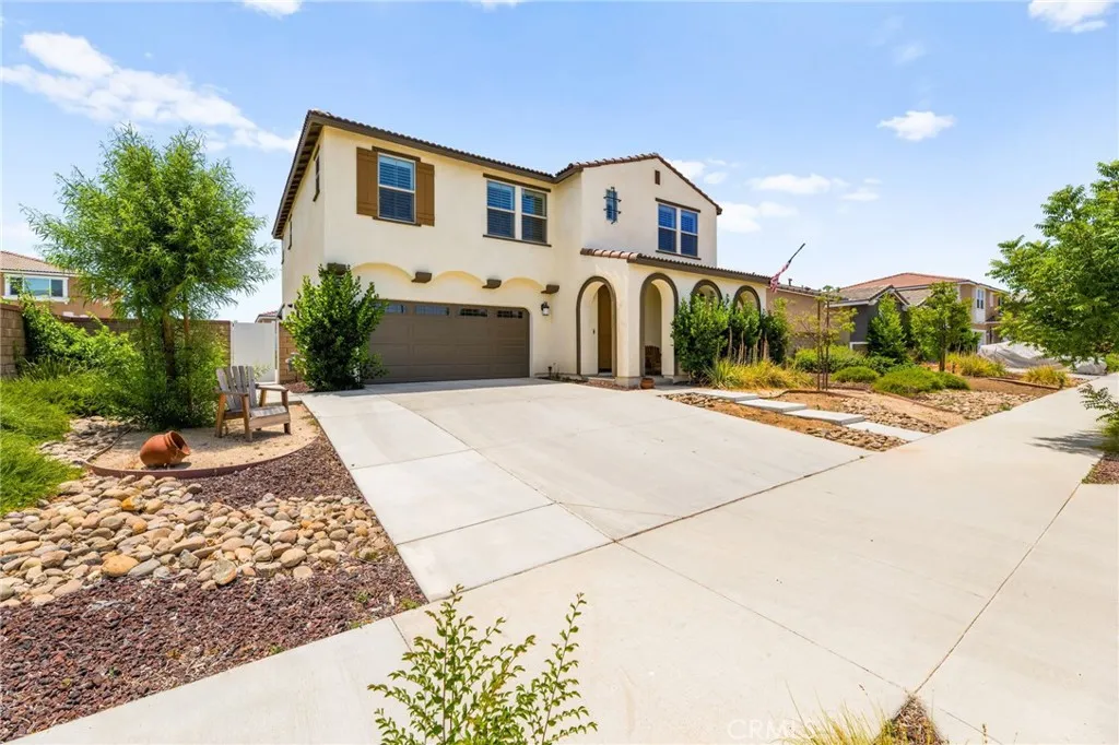 Possible VA assumption. Turnkey Dream Home in Menifee! Solar will be included. This 4 bed, 3 bath two-story home built in 2021 offers modern living in a desirable community with pool, walking paths, and more. Conveniently located near shopping, dining, and schools. Enjoy an open floor plan with natural light, an island kitchen with a large walk-in pantry, recessed lighting, and upgraded shutter blinds. One bedroom and full bath are downstairsperfect for guests or multigenerational living. Upstairs features a spacious loft and three bedrooms with walk-in closets. The laundry room is its own room and offers ample storage. Freshly installed carpet throughout. Step outside to a private backyard with a covered patio, ceiling fans, concrete seating area, and large side yards. Solar panels and a 2-car garage complete this move-in ready gem. Dont miss this beautifully maintained home!