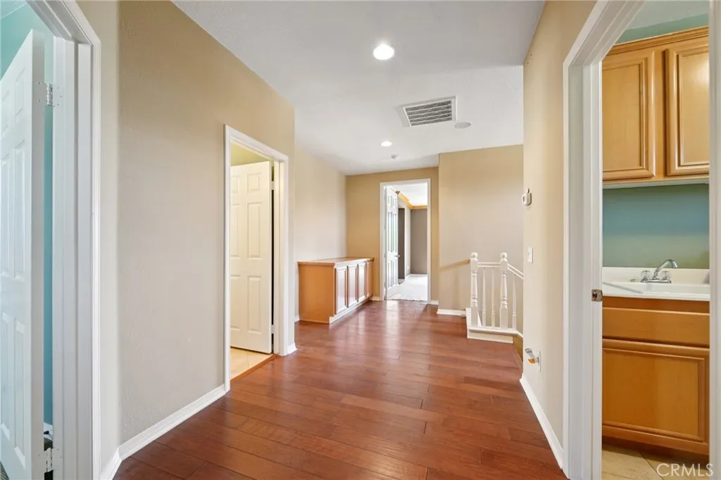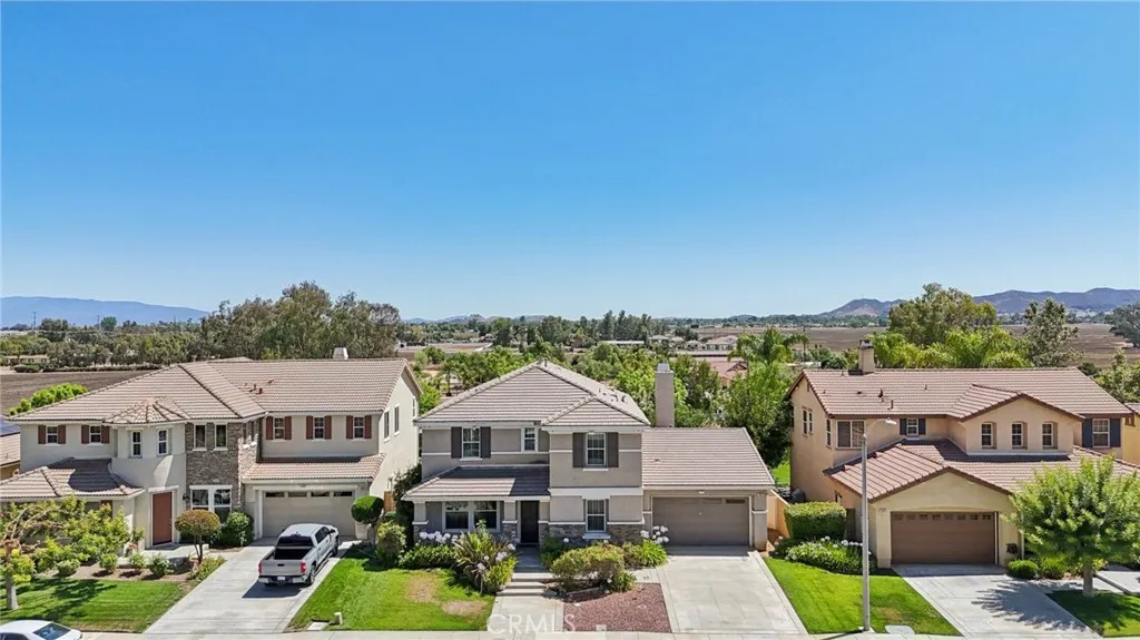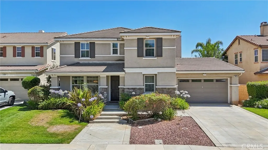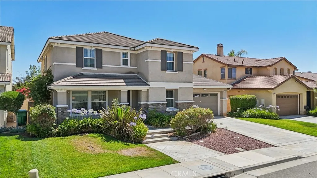 TRULY A MUST-SEE! Stunning former Beazer model home featuring 3,351 sq. ft., 4 bedrooms, 4 bathrooms, and a private office, situated on a pool-sized lot with a 3-car tandem garage. This home has designer upgrades, including custom paint, elegant window treatments, and upgraded flooring. Step inside to find beautiful wood flooring, custom-designed tile, and crown molding in the dining and living rooms. Designer area rugs are included with the home. The spacious great room with a cozy fireplace flows seamlessly into the gourmet kitchen, complete with granite slab countertops, custom tile backsplash, a large center island with seating, GE stainless steel appliances, a writing desk, and a walk-in pantry. The downstairs library features crown molding, custom-built-in desks, bookshelves, designer carpeting, and plantation shutters. The laundry room, also downstairs, offers ample cabinetry, Corian countertops, and a sink. Upstairs, all bedrooms have their unique designer touches, including custom carpeting and stylish finishes. Each bathroom features tile flooring and Corian countertops. The luxurious primary suite boasts crown molding, ceiling fans, custom wallpaper, a private deck, dual sinks, upgraded countertops, wood shutters, and a large walk-in closet. The backyard is perfect for entertaining with a concrete patio, covered seating area, and built-in BBQideal for summer gatherings! Located in a fast-growing city, this home is your chance to own a beautifully upgraded property in a prime area. Dont miss the opportunity to make this your forever home! (See MLS #T09091575 for m