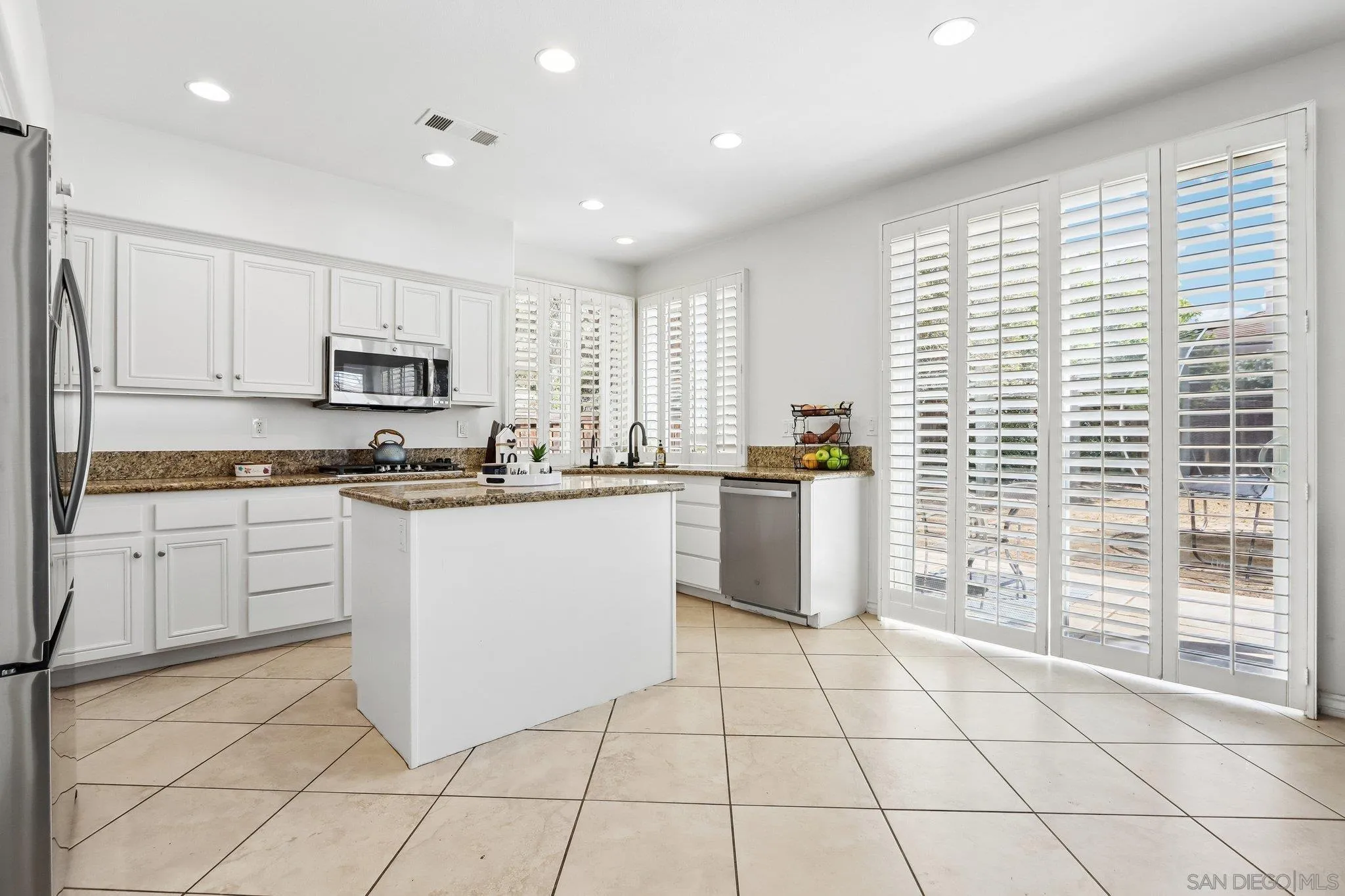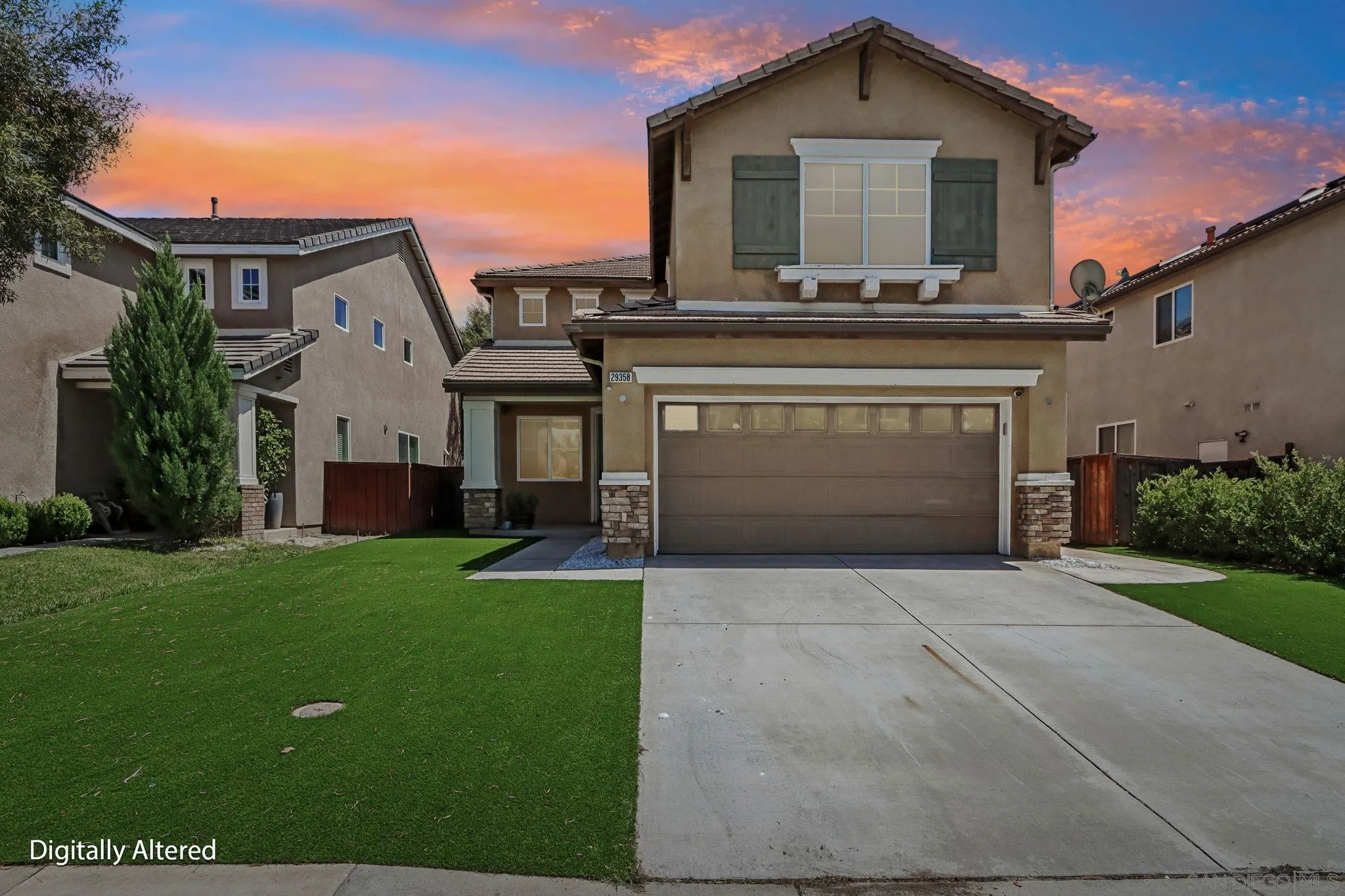 Opportunity meets value with this spacious, upgraded 5-bedroom home in Menifee Lakes—featuring no HOA, 32 panel solar, and a 1% lender credit for qualified buyers. Offering 2,425 sq ft of well-designed living space, this home combines comfort, functionality, and modern updates. Step inside to high-soaring ceilings and a freshly painted interior and brand-new flooring installed in 2024, featuring durable luxury vinyl plank downstairs and plush carpeting upstairs. Custom shutters throughout add both high end style and privacy. The spacious layout includes a convenient downstairs bedroom and full bath, complete with a handicap-accessible bathtub—perfect for guests or multi-generational living. The kitchen is a standout, featuring updated stainless-steel appliances, granite countertops, and ample cabinetry, opening seamlessly to the main living areas for easy entertaining. Upstairs, you’ll find four additional bedrooms, including a generously sized primary suite with an ensuite bath, walk-in closet, and a private balcony overlooking the backyard—an ideal retreat to unwind. A convenient upstairs laundry room adds everyday ease. Energy efficiency is a major bonus with a 30-panel solar system designed to significantly offset monthly electric costs. Ideally located near shopping, schools, the 215 freeway, Golf at Menifee Lakes Golf Course, hiking at Sunrise park and a place for pups to play at El Dorado Dog Park, this home offers both convenience and lifestyle in one of Menifee’s most sought-after neighborhoods.