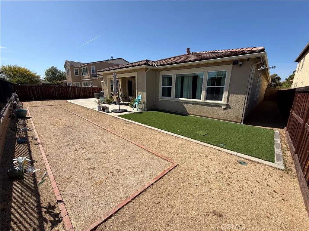 This stunning 4-bedroom, 2.5-bath home, spanning nearly 2,700 square feet, is located in the desirable Heritage Lake neighborhood. Upon entering through the electronic key lock, you are greeted by a spacious, bright great room featuring luxury vinyl tile flooring. The kitchen boasts white shaker cabinets, stainless steel appliances, quartz countertops, and a large island ideal for meal preparation and entertaining, complemented by both a gas stovetop and electric oven. The great room is designed for comfort, equipped with a large ceiling fan and a gas fireplace, and is fully wired for an entertainment system. The home includes both a formal dining room and a breakfast room, providing flexibility in furnishing. The laundry room is practical, featuring a deep sink, cabinets, and ample shelving for storage. The three-car garage includes a workshop area with a workbench and additional storage. Outdoor living is enhanced by a large California room with a fan, leading to a beautifully landscaped backyard that requires low maintenance. The patio is spacious enough for a barbecue setup, and the yard includes designated areas for games like bocce ball and horseshoes. The scenic views from the backyard include neighborhood landscaping and distant mountains, with seasonal highlights such as snow-capped peaks in winter and hot air balloons in spring. The home is equipped with custom underground drainage, new rain gutters, and a soft water system that provides purified water at every faucet, including an alkaline water option in the kitchen. The master suite features a large walk-in clo