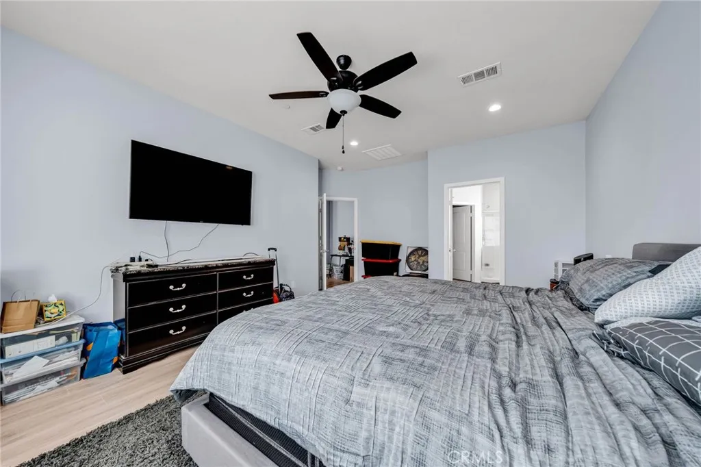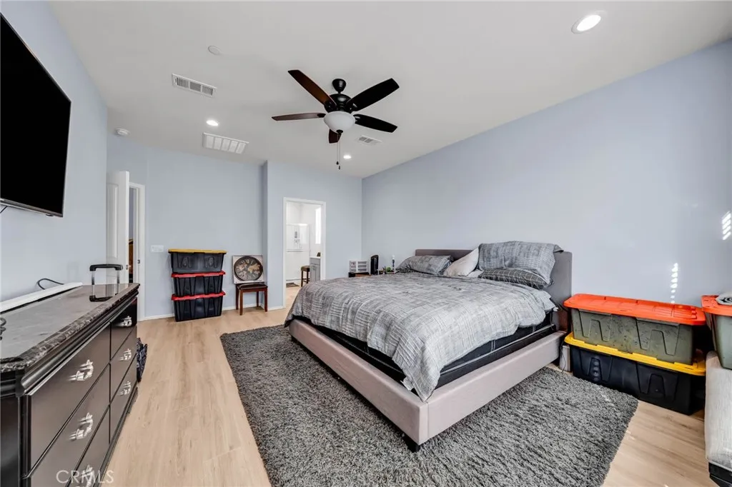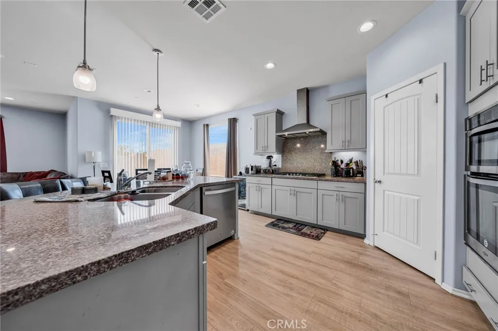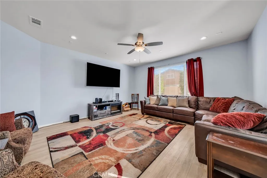 Discover the charm of this beautiful corner lot home located in the prestigious Reflections Gated Community. This exquisite 3-bedroom, 1.75-bath residence spans 1,952 square feet of thoughtfully designed living space, seamlessly blending comfort, functionality, and style. As you enter, you will be welcomed by an open-concept floor plan that exudes brightness and spaciousness, featuring generously sized bedrooms and a dedicated den/office area. The heart of this home is undoubtedly the gourmet kitchen, adorned with granite countertops, a large center island, and an abundance of cabinet space. It is equipped with a large gas cooktop, an oversized hood, a microwave/oven combo, and stainless-steel appliances, making it a chefs dream. Retreat to the expansive primary suite, which includes a walk-in closet, dual vanities, and a luxurious walk-in shower. The private backyard offers a functional fire pit, perfect for gatherings. Situated in a prime location, this home is ideal for outdoor enthusiasts, with scenic trails for walking, biking, and hiking just moments away. Enjoy convenient access to the community pool, complete with a splash pad and water slide, as well as a community center, lake, parks, and highly-rated schools. With close proximity to restaurants, shopping options like CVS and Stater Bros market, and major freeways, this property presents an unparalleled opportunity to reside in a truly exceptional neighborhood. Additionally, the home features a solar electric system, providing significant energy savings and year-round efficiencyan incredible value and long-term be