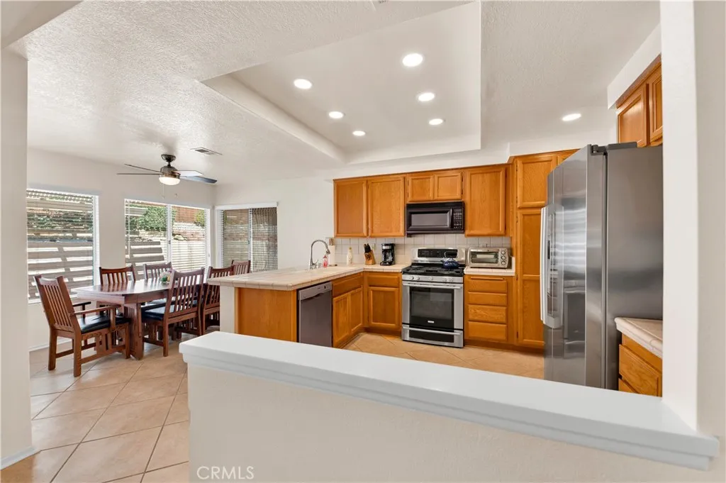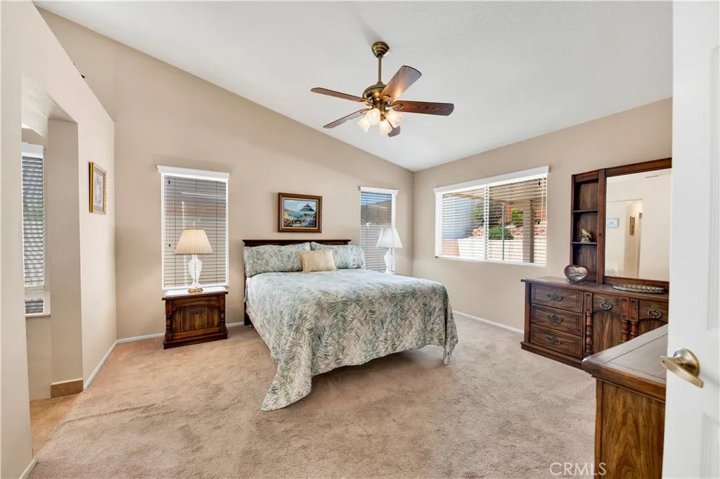 Be in your NEW HOME for the Holidays!!Gated RV Parking/Boat Parking at this Beautiful and Rare 3 Bedroom 2 Bathroom Home located in the highly desirable 55+ Age Serenade Community conveniently within the heart of Menifee . This home is within a 55+ Community with NO HOA and Low Taxes. Step inside to a light filled home with an open floor plan . The upgraded tile flooring flows throughout the high traffic areas including family room , kitchen , hallways and bathrooms with carpet in the Living Room, Dining Room and all bedrooms. The spacious living room is located at the front of the home with a cozy modern fireplace. The hallway leads to 3 spacious bedrooms . The first bedroom is privately located for guests or a home office. Double doors open to the spacious primary suite with en-suite bathroom offering double vanities, luxurious soaking tub, and walk in shower plus a generous sized walk in closet . Your kitchen features lots of cabinets,pantry , abundant counter space , stainless steel appliances , large dining area , and open to the family room with large windows and views of your tranquil backyard . Enjoy serene outdoor living with easy to maintain front landscape and relaxing backyard with beautiful landscape and fruit trees to enjoy from your Alumnawood Patio stretching the entire length of the home plus a large side yard with shed. Additional highlights of this home is the inside laundry room , oversized 2 car garage with workshop , NEW AC unit in 2022, and Affordable Energy Efficient Solar Power Purchase Agreement keeping your home energy bills low . Don't miss this