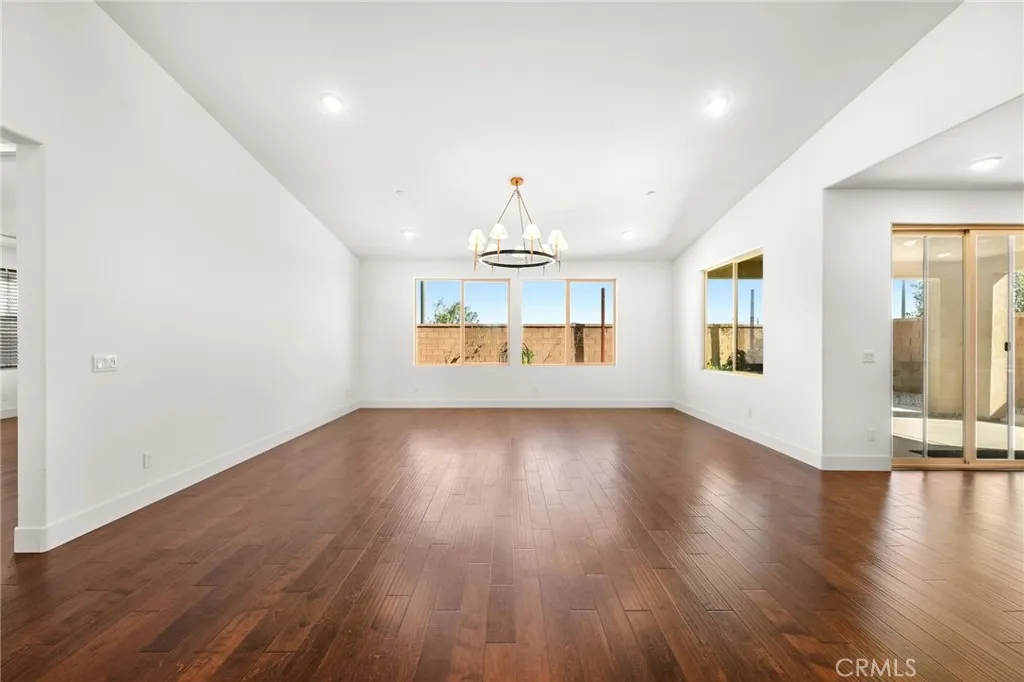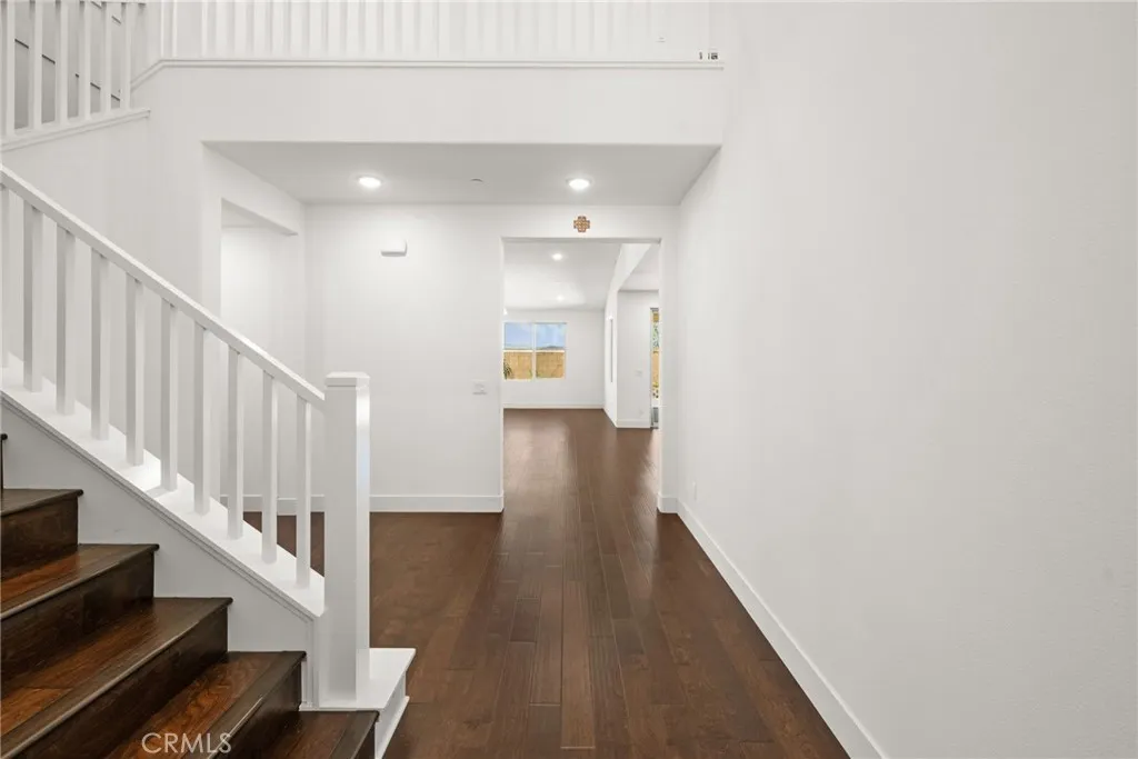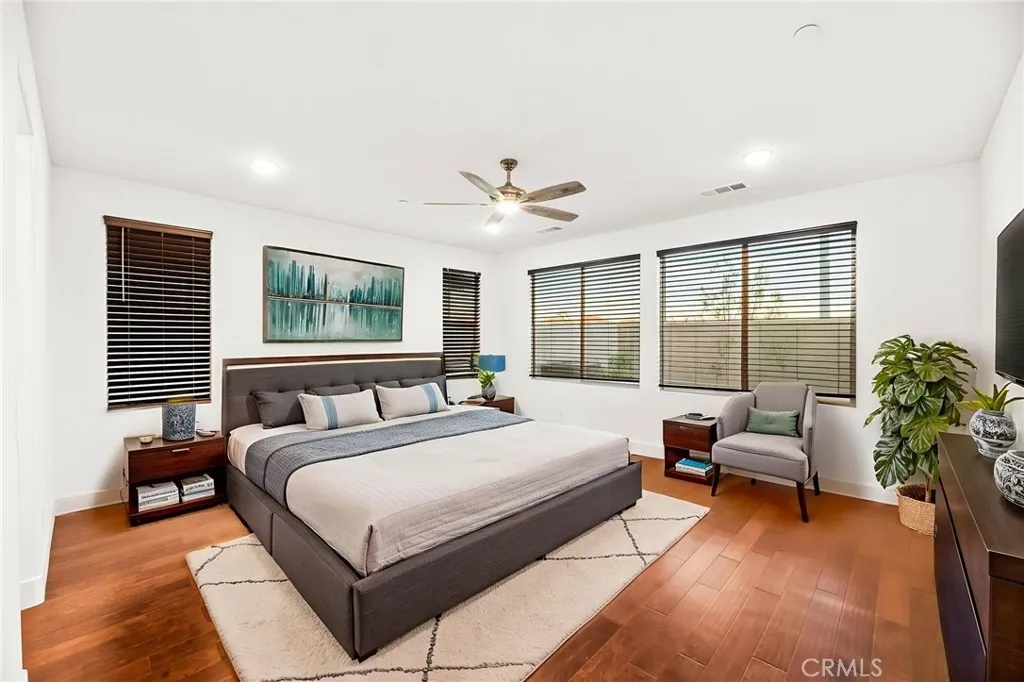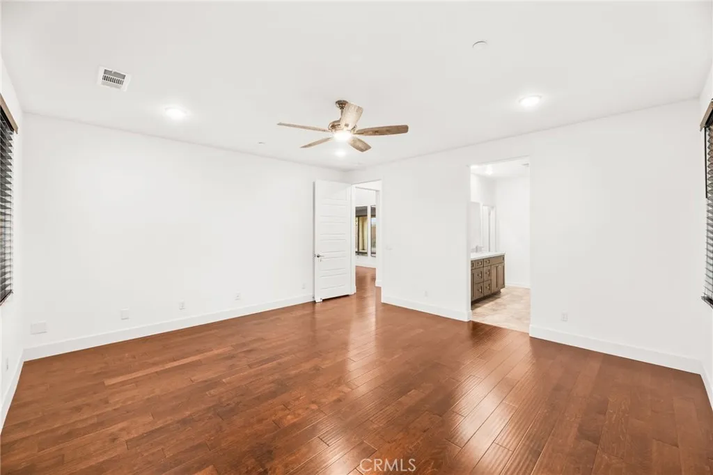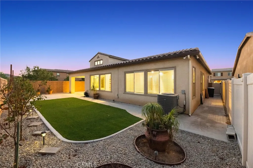 Welcome to this Beautiful, TURN-KEY, Better Than New, Highly Upgraded 4 Bedroom with BONUS Loft, Main Floor Master Bedroom, Modern Single Story Style Home with OWNED SOLAR located in the Prestigious Planned Community of Centennial by Pardee Homes! Perfectly positioned on a premium corner lot with stunning views, this home has no neighboring homes behind and combines timeless elegance with modern comfort. Step inside and be captivated by this unique layout with vaulted ceilings, hardwood floors, and an open-air staircase. The thoughtful floor plan includes three spacious bedrooms conveniently located on the main level and a large loft and guest bedroom on the second level, ideal for flexible living. At the heart of the home lies a chefs kitchen thats both stylish and functionalfeaturing GE appliances, double ovens, dual-tone countertops, and an expansive island perfect for entertaining. The home also offers ample storage and a three-car garage, ensuring space for everything you need. Upstairs, retreat to a private haven complete with a generous loft (potential 5th bedroom) an oversized secondary bedroom, and a full bathroomperfect for guests, teens, or a home office. Your backyard paradise awaits with an extended covered California Room patio, low-maintenance concrete and artificial turf, along with raised planter beds ready for your garden creations. Enjoy the luxury of Paid-Off Solar, energy-efficient upgrades, and a low HOA in one of Southern Californias fastest-growing cities. Conveniently located near top-rated schools, parks, shopping, and freeways, this home offers th