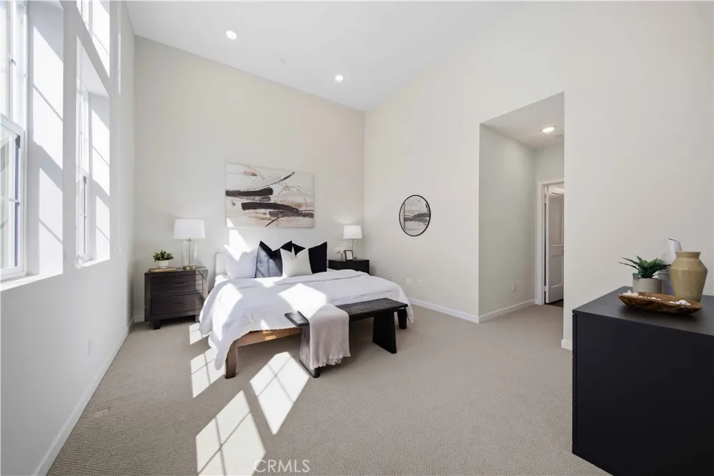 Welcome to 105 Lugo in Mission Viejo, a beautifully maintained, newer construction home built just about two years ago and proudly owned by its original owner. Located in the desirable Saddleback Place community by Trumark Homes, this modern residence offers the perfect blend of contemporary design, energy efficiency, and low-maintenance living. With approximately 887 square feet of thoughtfully designed space, the open-concept floor plan feels bright and spacious, enhanced by oversized dual-pane windows that fill the home with natural light. The main living area features wood-look luxury vinyl flooring, recessed lighting, and custom window treatments, creating a clean, sophisticated look. The kitchen is both stylish and functional, complete with stainless steel appliances, sleek countertops, white cabinetry, and seamless flow into the living and dining areasideal for everyday living and entertaining. Upstairs, plush upgraded Berber carpeting lines the staircase, hallway, and primary bedroom, adding warmth and comfort. The spacious primary suite is highlighted by dramatic 13-foot ceilings, creating an airy retreat with an open, light-filled ambiance. Built with todays efficiency standards in mind, the home includes owned solar panels and a tankless water heater, offering long-term energy savings. An oversized one-car garage plus an additional dedicated parking space provide added convenience. Residents enjoy access to the community pool, spa, and BBQ area, perfect for relaxing or gathering with friends. Conveniently located near the 241 Toll Road, major freeways, shopping,