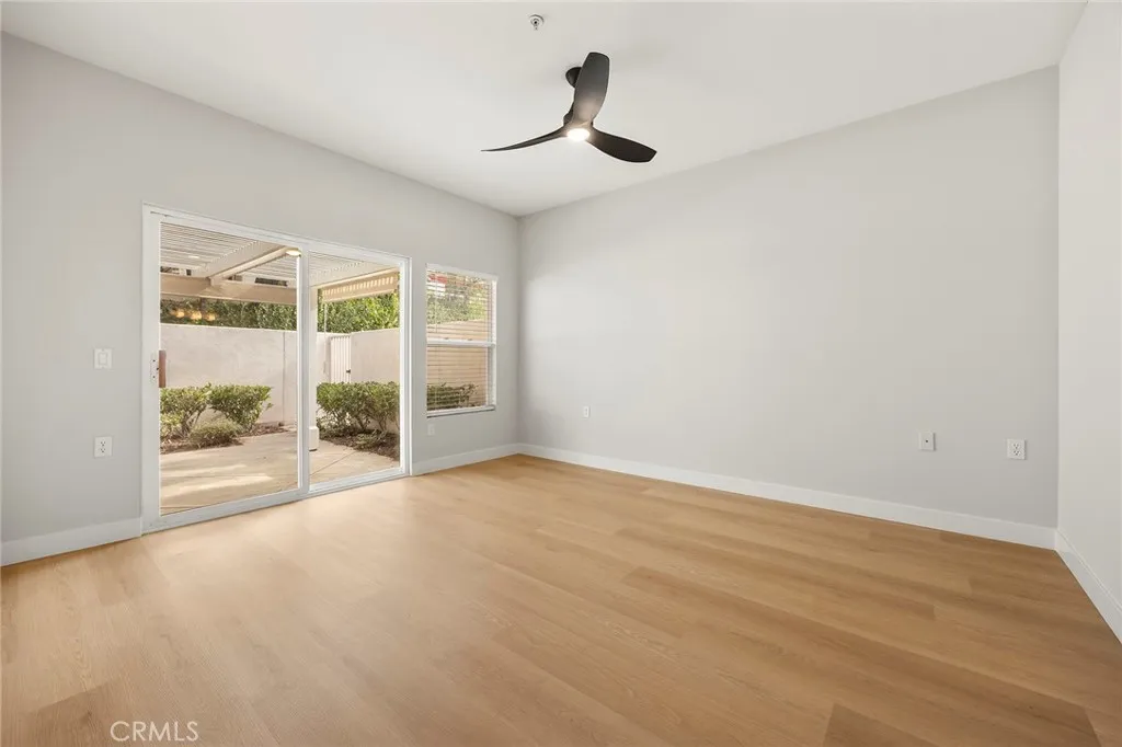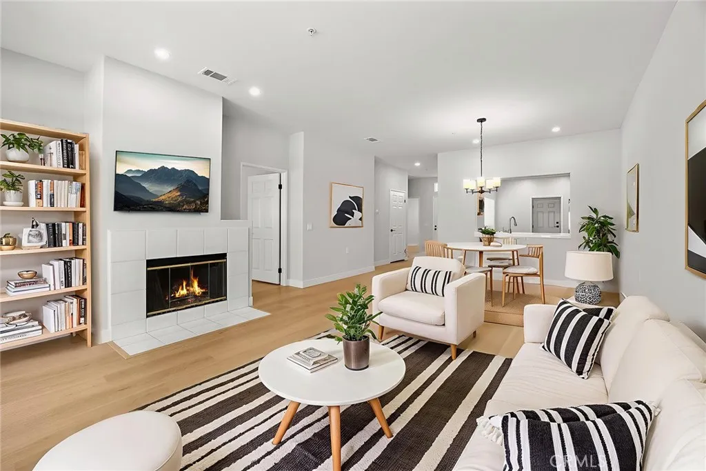 Listing Re-Launch! The market spoke, and the sellers listened. This beautifully renovated home (renovation completed 11/9) features brand-new luxury vinyl flooring, fresh designer paint, modern baseboards, contemporary door hardware, sleek ceiling fans, energy-efficient LED lighting, updated window coverings, stylish vanity lights, new faucets and fixtures, and a new dining area chandelier. All cabinets have matching pulls, and the eat-in kitchen boasts a complete suite of stainless steel Samsung appliances, including a new dishwasher. Both garages have freshly painted walls, coated floors, the included washer, dryer, and refrigerator make move-in easy. This spacious, open-concept floorplan offers approximately 1,278 sqft of living space with 2 bedrooms, 2 full bathrooms, 9-foot ceilings, and abundant windows for natural light. The large family room features a cozy fireplace, while the kitchen includes a breakfast nook, generous counter and cabinet space. The primary suite offers a ceiling fan, sliding glass door to a serene backyard, and a luxurious bathroom with dual sinks, ample storage, a walk-in shower, and a walk-in closet. The secondary bedroom is perfect for guests or a home office. Located in Palmia, a gated 55+ community, residents enjoy a resort-style clubhouse and amenities including a pool, spa, tennis courts, pickleball, an 18-hole natural grass putting green, and multiple community activity rooms. Lake Mission Viejo access is included, and HOA fees cover cable and internet services.