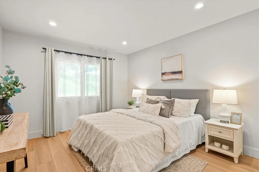 SIGNIFICANT PRICE IMPROVEMENT, a bold adjustment to welcome a new owner before the holidays! BEST value in the community at this new price! This extensively upgraded single-level home in the highly desirable 55+ community of Mission Viejo features an open-concept design with soaring ceilings is perfect for entertaining and everyday living. Thoughtfully reimagined, the residence blends timeless design with todays most desirable features. Step inside through a beautiful entry door and be greeted by luxury vinyl plank flooring, modern baseboards, and energy-efficient LED recessed lighting with designer-selected fixtures. Every detail has been consideredfrom updated electrical outlets and sleek switches to contemporary door hardware. Cozy electric fireplaces in both the living room and primary bedroom add warmth and charm, while dual-pane windows invite abundant natural light. A custom cabinetry feature along the entryway offers versatile storageperfect for pantry items, linens, or anything your heart desires. The fireplace in the primary bedroom was added for extra cozy evenings. The gourmet kitchen is a true centerpiece, showcasing two-tone shaker cabinetry with soft-close drawers, built-in spice rack, and pull-out storage. Striking quartz countertops, a full-height backsplash, and a waterfall-edge island set the stage for entertaining. Stainless steel appliancesincluding a brand-new refrigeratorplus ceiling-height cabinets maximize both style and storage. The den, which also serves as an office or guest room, features a convenient wine refrigeratoran ideal touch for hosting