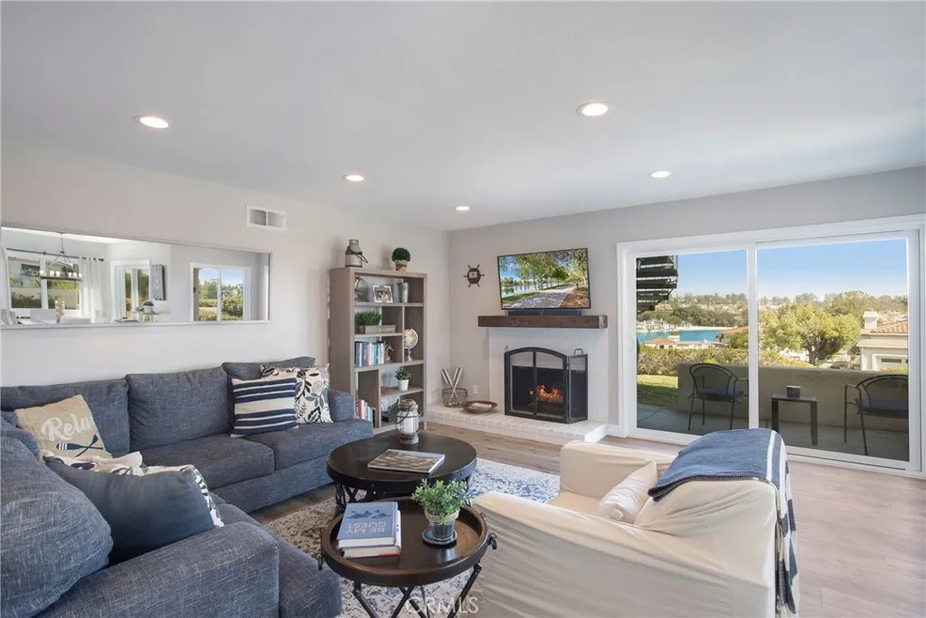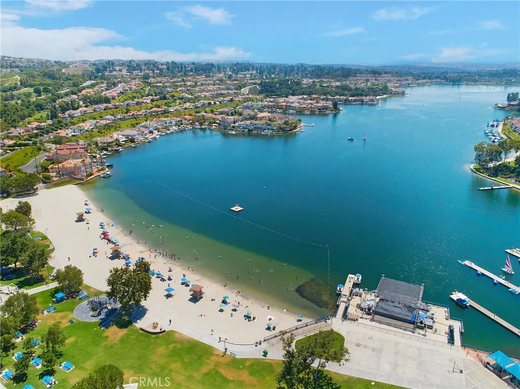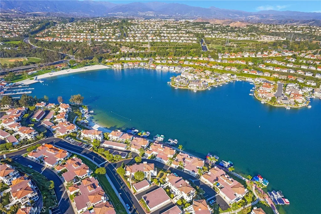 From the moment you step inside you are greeted with panoramic lake and mountain views. Located in one of Mission Viejos most sought-after guard-gated lakefront communities, this stunning homeis perched on a quiet cul-de-sac offering unobstructed views of Lake MV, Saddleback Mountains and breathtaking sunsets. Spacious open floorplan seamlessly connects the living areas with walls of glass opening to a private patio surrounded by greenbeltscreating an ideal backdrop for indoor-outdoor living and entertaining. The home has been remodeled with no expense spared, including new dual-pane windows and sliding doors that flood the interior with natural light.Living room features remodeled fireplace with custom mantel complemented by luxury vinyl flooring throughout the main living areas. The fully renovatedkitchenfeatures quartz countertops, designer backsplash, soft-close cabinetry, Gallery stainless steel appliances and charming nook perfect for casual dining, home office or flexible living space. Primary suite is a private sanctuary where youll wake up to peaceful lake views and offers expansive closet space with custom organizers, spa-inspired bath showcasing walk-in shower, soft-close dual vanities, quartz countertops, brushed hardware, designer mirrors and lighting. Secondary bath is equally impressive with walk-in shower accented with pebble detail, new vanity and abundant natural light. Even the linen area has been thoughtfully redesigned with floor-to-ceiling custom cabinetry. Enjoy the convenience of a 2-car garage with new smart opener just steps from your private entry