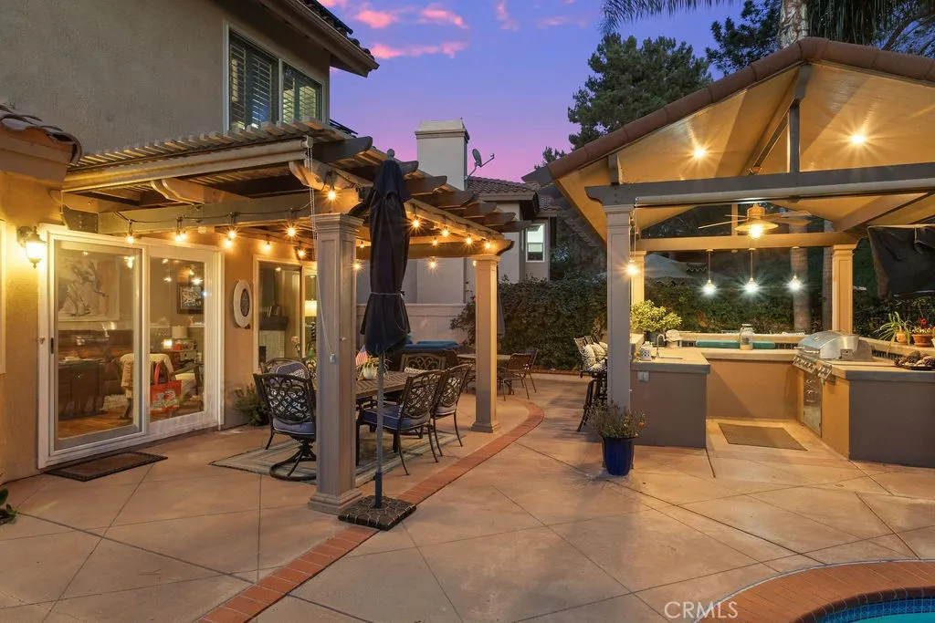 Incredible opportunity for this 3-bedroom, 2.5-bath pool home tucked away at the end of a quiet cul-de-sac in the highly sought-after Bel Air community of Mission Viejo. Upon entering the home the formal living room flows seamlessly into the dining area and onward to the beautifully remodeled kitchen, featuring upgraded custom cabinetry, soft-close drawers, granite countertops, a large center island with built-in wine chiller, high-end Samsung appliances, and a sunny dining nook overlooking the spectacular backyard and pool. The kitchen opens directly to the family room with a fireplace and serene views of the pool and spa. The primary suite is a true retreat, offering a spa-like bathroom with a travertine-lined walk-in shower and bench, granite counters, dual vanities with soft-close drawers, designer lighting, framed mirrors, and a walk-in closet with sleek opaque silhouette glass sliding doors. Both the hallway and downstairs bathrooms have also been upgraded. Designed for indoor-outdoor living, the resort-style backyard is truly an entertainers dream. The covered outdoor kitchen is complete with bar seating, a premium five-burner Bull BBQ with two side burners, Flame outdoor refrigerator, and hot/cold water sink. The sparkling pool and attached spa have newer Pentair pool equipment, all conveniently controlled via a phone app--along with outdoor lighting and music in both the front and back yards. Additional highlights include solar system (owned)for both house and pool (our sellers heated pool April thru October & with AC in summer had an electricity cost of approximat