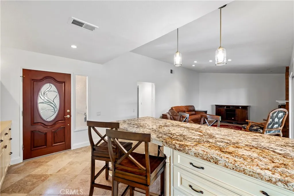 Welcome to 27972 Calle Casal A Truly Special Place to Call Home. Tucked away in a peaceful and private location, this beautifully updated Blanca model offers comfort, style, and modern living. Featuring 2 bedrooms, 1.5 bathrooms, and an attached garage, this home has been thoughtfully remodeled with quality finishes throughout. Step inside to a bright and open floor plan where the wall between the kitchen and living room has been removed to create an airy, spacious feel. The remodeled kitchen boasts custom cabinetry, granite countertops, a custom breakfast bar, and newer stainless-steel appliances including the refrigerator. Elegant stone flooring flows throughout the home, enhancing its sophisticated charm. The primary bathroom has been beautifully upgraded with a walk-in shower, custom stonework, built-in bench, and glass enclosure. Both bathrooms feature newer vanities, and the home is equipped with double-pane windows, sliding doors, recessed lighting, and a newer heating and air conditioning system for year-round comfort. Enjoy the outdoors on the large, secluded back patio, complete with a cover and breathtaking panoramic views perfect for relaxing or entertaining. A custom front door adds to the homes welcoming appeal. Set within a serene 55+ community spanning 484 acres of mature trees and rolling hills, residents enjoy resort-style amenities including two recreation centers, pools, spas, pickleball and tennis courts, lawn bowling, sport courts, gym/exercise room, billiards, clubhouse, and more. The HOA also covers exterior painting, front yard maintenance, trash