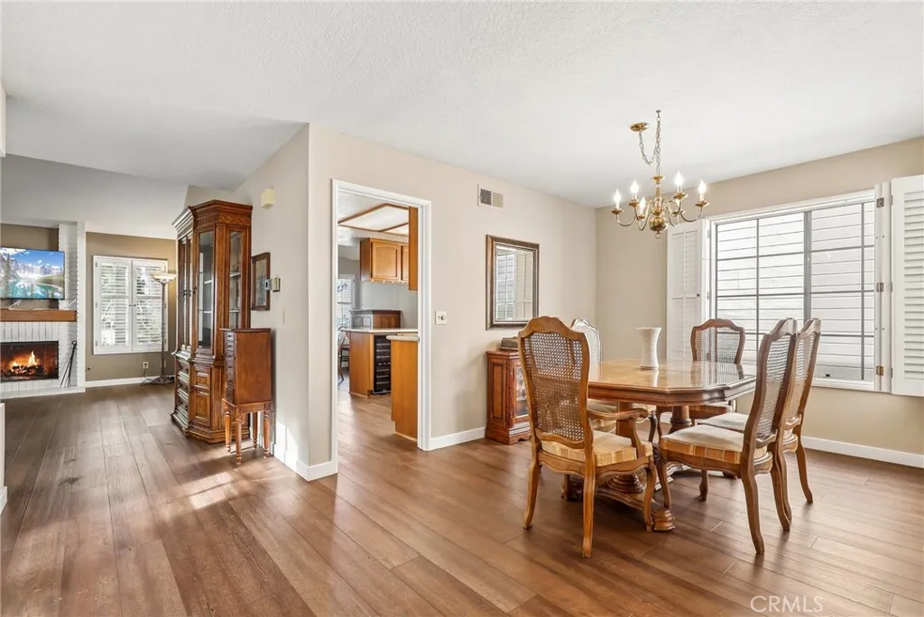 Lovely end-unit, corner location home offering 1,439 square feet in the highly sought-after Casta Del Sol 55+ community. This well-maintained residence showcases true pride of ownership throughout. A charming brick patio and welcoming blue front door create an inviting entry. Step inside to a spacious living area featuring a cozy fireplace, perfect for relaxing or entertaining. The open layout seamlessly connects the living room, dining area, and kitchen, in addition to a separate formal dining room for more traditional gatherings. The primary suite is a true retreat, complete with an en-suite bathroom and sliding glass doors that lead to a wraparound patio with scenic views. The additional bedroom is generously sized. Highlights include a west-facing back patio ideal for enjoying sunset views, newer vinyl flooring, a two-car attached garage, and a welcoming veranda off the entry. Residents of Casta Del Sol enjoy resort-style amenitiesdont miss the opportunity to make this exceptional home yours!