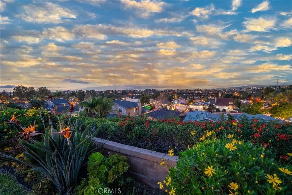 Tucked away at the end of a quiet cul-de-sac, this light-filled home offers one of the most exceptional wide, unobstructed panoramic views in the neighborhood. The elevated setting provides a true forever view, expansive in scale and depth, along with a rare sense of privacymaking this a standout opportunity for buyers seeking location, outlook, and long-term potential. The property sits on a flat, highly usable lot with ample room for expansion, offering endless possibilities to add square footage, a pool, or design a custom outdoor living space. Few homes combine this type of large, open view with such a functional lot, making this a truly special offering. Inside, the home feels open and airy with abundant natural light throughout. The floor plan includes a desirable main-level bedroom with a full bathroom, ideal for guests, flexible living, or a home office. Recent improvements include fresh interior and exterior paint, a newer roof, new furnace, new air conditioning, and new windows, providing peace of mind knowing major systems and big-ticket items have already been addressed. Step outside to the backyard and take in sweeping panoramic views that stretch across the horizon. As the sun sets, the sky transforms into a breathtaking backdropan everyday reminder of why this location is so special. Whether enjoying a quiet evening or gathering with friends, the setting delivers a truly memorable experience. Low HOA dues, a premium cul-de-sac location, and close proximity to Lake Mission Viejo, Oso Creek Trail, La Paws Dog Park, and Oso Creek Golf Course further enhance the