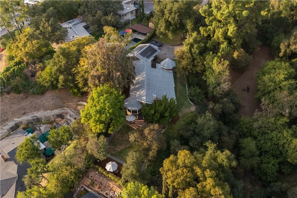 Calling all nature enthusiasts! This exceptional single-level home, set on a sprawling 34,609 sq. ft. lot in highly desirable North Monrovia, offers a rare combination of privacy, space, and modern efficiency. Sited behind a private fence and beautifully shaded by a mature oak tree, the property feels like a secluded retreat. The thoughtful, open floor plan is designed for both comfortable daily living and entertaining. Inside, you'll find a formal living room and a spacious Great Room featuring a cozy fireplace, designated dining area, and walls of windows that perfectly frame the views of the lush, expansive grounds. The kitchen is appointed with ample Shaker-style cabinetry, granite countertops, and built-in appliances. The primary retreat is thoughtfully tucked away for maximum privacy, boasting a walk-in closet and an adjoining bathroom with a dual-sink vanity. Two additional bedrooms and a secondary bathroom, also featuring a dual-sink vanity and a separate tub and shower. The outdoor space is a true highlight, offering several patio areas ideal for entertaining - a blank slate perfect for installing a pool or realizing a variety of other outdoor visions as well as a large, flat pad accessible by a winding path. Additional amenities include wood flooring, central air and heat, a dedicated utility room, and recent interior and exterior painting. The home is an all-electric residence powered by an owned solar system, offering significant energy efficiency. Parking is plentiful with a detached 2-car garage featuring upper storage, plus several uncovered spaces. Experienc