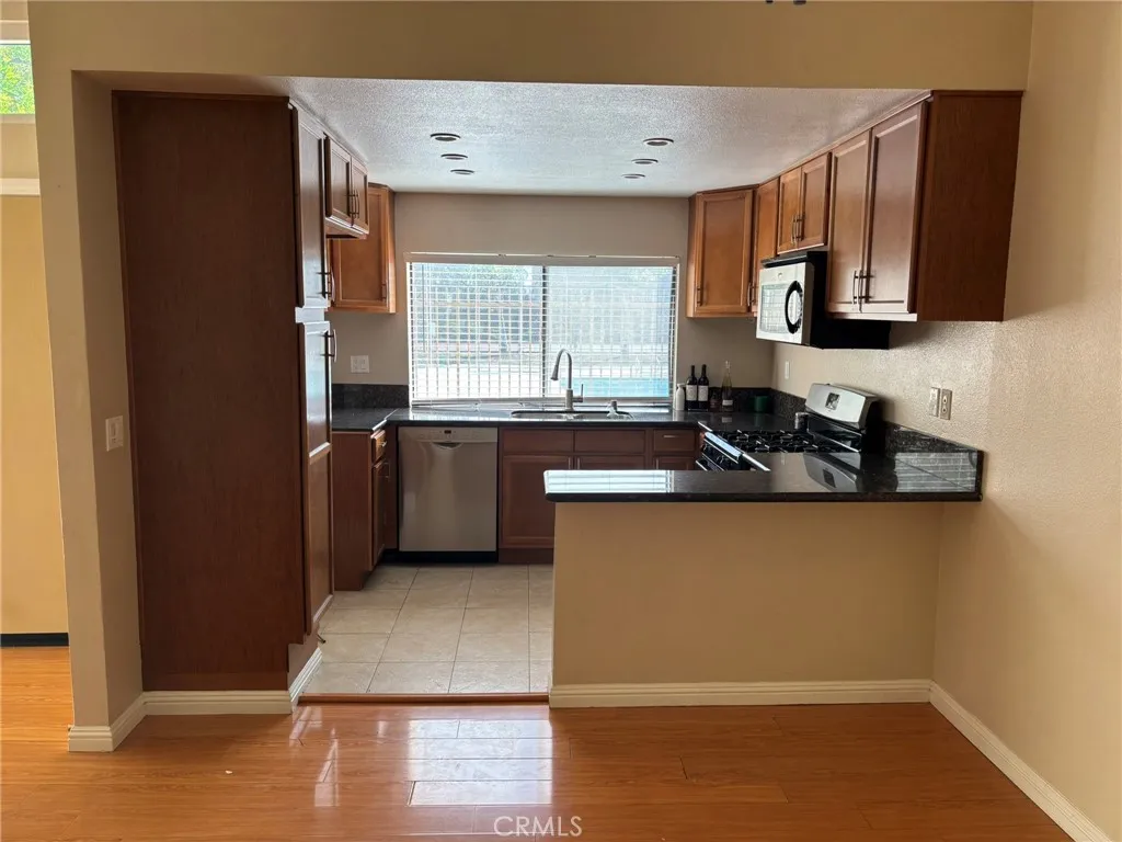 END UNIT! This two bedroom and two bathroom townhouse is located in one of the most desired neighborhood in the heart of North Montebello! This unit offers 1,122 square feet living space to a large living room with cathedral ceiling, wood flooring, recessed lighting, beautiful fireplace, double pane sliding door leading to an outdoor large patio. Upgraded kitchen with built-in appliances. Cozy dining area. Master bedroom with ceiling fan, wooden shutters, UPGRADED master bathroom and 2 spacious closets. 2nd bedroom with double mirrored closet door, ceiling fan and recessed lighting. Fully upgraded hallway bathroom. Central air and heating, laundry area with 2 car attached garage with direct access to the house. Gated community, ample guest parking spaces. Common amenities include sparkling swimming pool, spa and tennis court. Close to library, park, city hall. Easy access to freeways and public transportations. Show and sell!