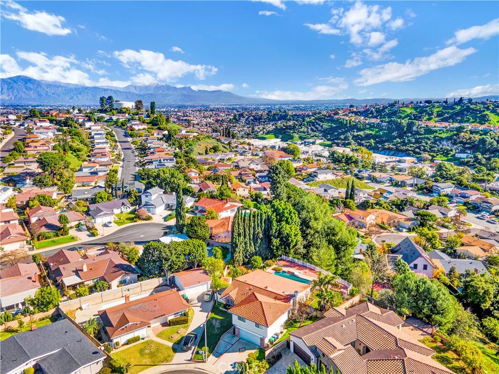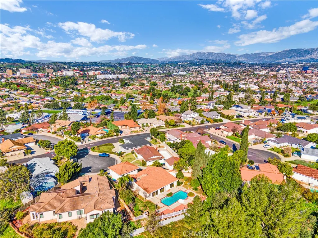 Welcome to 1641 Copa Way, a spacious hillside residence tucked away on a quiet cul-de-sac in Monterey Park, offering sweeping panoramic views of the San Gabriel Valley, Downtown Los Angeles, and the surrounding hillside scenery. Set on an expansive 11,166 sq. ft. lot, the property combines elevation, privacy, and a versatile layout well suited for everyday living and entertaining. The home features 4 bedrooms and 4 bathrooms across approximately 2,654 sq. ft., highlighted by an expansive open-concept great room filled with natural light. Warm wood flooring and an interior fireplace anchor the main gathering space, while large sliding doors allow the great room to flow seamlessly outdoors, creating an ideal indooroutdoor living experience. The private backyard offers a sparkling pool, expansive deck, and fruit trees, providing generous space for outdoor gatherings, dining, or relaxed weekends enjoying the elevated hillside setting. A well-appointed kitchen with a center island provides ample storage and counter space and connects naturally to the main living areas. The thoughtfully designed floor plan includes two primary suites on the main level, offering flexible single-level living options, extended guest accommodations, or adaptable space to suit a variety of lifestyle needs. Upstairs, two additional bedrooms, a bathroom, and an upstairs family room provide additional living space suitable for work, recreation, or everyday use. The home is conveniently located near the Monterey Park Golf Course, local parks, dining, and everyday amenities, with easy access to the 10, 60,