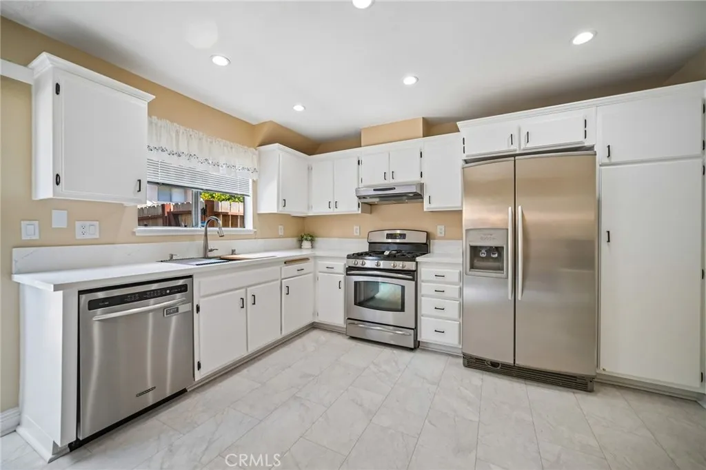 Ideally located in the desirable Varsity Park community near Moorpark College, this beautifully updated end unit 3-bedroom, 2-bath townhome offers a polished blend of style, comfort, and convenience. Light and bright throughout, the home features fresh interior paint, luxury vinyl plank flooring, new carpet, vertical blinds, ceiling fans in all bedrooms, and a thoughtfully designed layout with all bedrooms and laundry located upstairs. The newly renovated kitchen brings a refined modern feel with quartz countertops, stainless steel appliances, a stainless steel sink, and clean contemporary finishes. Upstairs, the bedrooms offer ample closet space, including a private balcony off one of the bedrooms for a quiet outdoor retreat. The private backyard is a standout feature, with fruit trees, a newer fence, and room to relax, dine, or entertain. Additional highlights include a newer water heater, newer furnace and AC, included refrigerator, washer, dryer, and microwave, plus a rare parking setup with one attached 1-car garage, one detached 1-car garage, and a 2-car driveway. HOA includes water, trash, exterior maintenance, pool, and clubhouse. Close to parks, shopping, dining, Moorpark College, and easy freeway access.