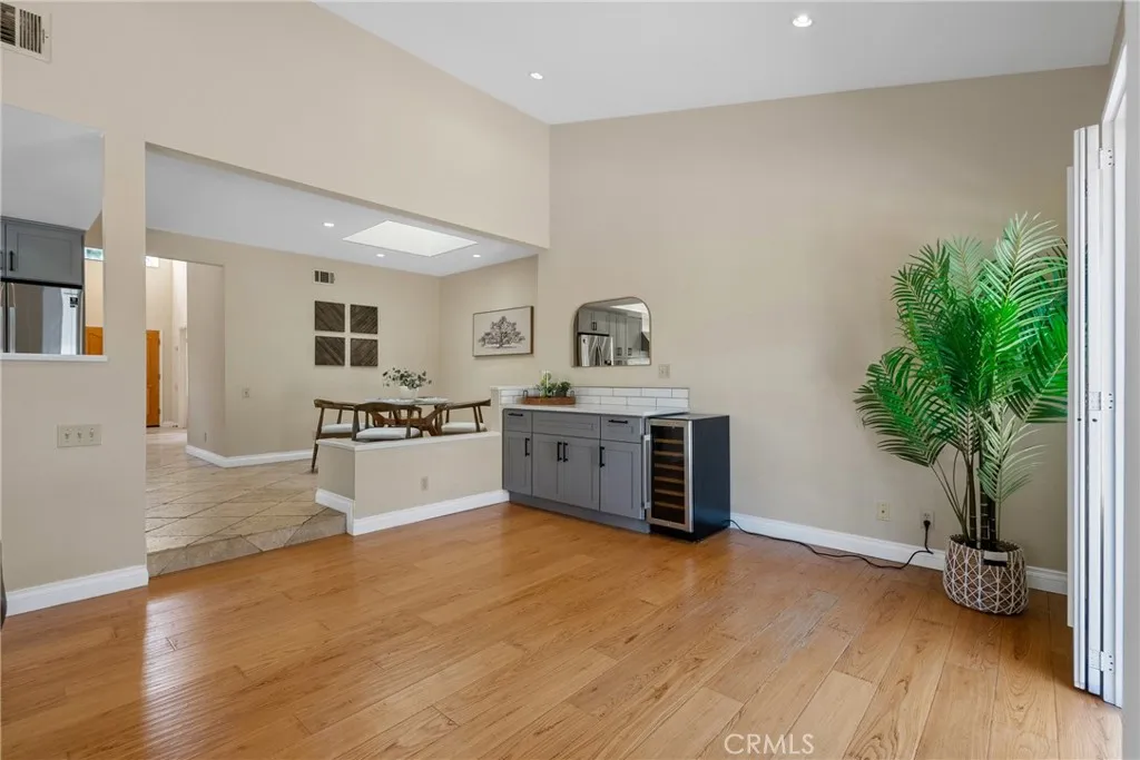 Welcome to this beautifully updated single-story home nestled on a peaceful cul-de-sac in one of the areas most sought-after communities. Offering the perfect blend of space, style, and functionality, this expansive residence features 4 generously sized bedrooms and 3 full bathrooms. The luxurious primary suite is a true retreatcomplete with a spacious walk-in closet, dual vanities, custom built-in storage, a freestanding soaking tub, and a walk-in shower. At the heart of the home, youll find a thoughtfully remodeled kitchen designed for both everyday living and entertaining. Enjoy abundant cabinetry, ample counter space, and a sleek built-in wine fridgeplus the refrigerator is included. The kitchen seamlessly flows into the casual dining area and an inviting family room with a cozy fireplace, creating an open-concept space perfect for gatherings. Additional highlights include high ceilings, a formal living and dining area, a convenient indoor laundry room, and a spacious 3-car garage with built-in storage. Step outside to a private backyard featuring a built-in BBQideal for weekend entertaining or relaxing evenings at home. Enjoy access to the community HOA amenities, including a sparkling poolperfect for summer fun with the family. This rare single-story gem offers comfort, elegance, and practicality all in one. Dont miss your chance to make it yours!