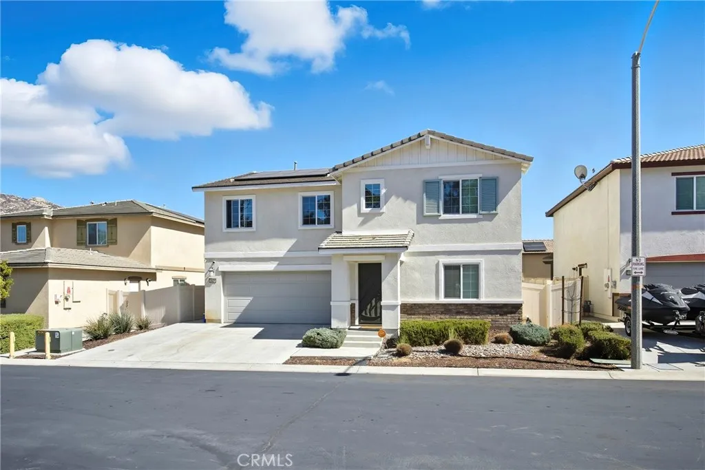 Welcome to Meadow Creek where comfort meets contemporary living. This stunning 4-bedroom, with 1 on the first floor, and 3-bath home is nestled within the highly desirable gated community of Meadow Creek. Designed with an open-concept layout, the spacious living and dining areas flow seamlessly togetherideal for both everyday living and entertaining guests. The modern kitchen features sleek countertops, stainless steel appliances, and plenty of cabinetry for storage. Upstairs, a large loft offers flexible spaceperfect for a home office, playroom, or media area. The primary suite serves as a relaxing retreat with a generous walk-in closet and a spa-inspired ensuite bathroom. Residents enjoy exclusive access to resort-style amenities, including a sparkling pool, spa, clubhouse, BBQ area, playground, and fully equipped fitness centerall within this private gated enclave. Prime Location: Conveniently located near premier shopping, dining, and entertainment, this Meadow Creek home also offers easy access to the 60 Freeway and is within walking distance to Hidden Springs Elementary, Vista Heights Middle, and Canyon Springs High Schoolplus just 12 minutes from UC Riverside. This property also has solar! Experience the perfect blend of style, comfort, and community at Meadow Creek.