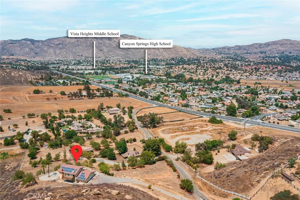 Sitting alone atop a mountain at the end of an extended private driveway, this 4-bedroom retreat delivers unmatched privacy, sweeping mountain views behind, and dazzling 270 city lights in front.Backed by Box Springs Mountain Reserve, the nearly 2-acre property offers complete self-sufficiency with a private well and paid-off solar panelsand no utility bills make off-grid living possiblewithout sacrificing modern comforts. Inside, warm wood finishes, a stone fireplace, chefs kitchen, and spacious bedrooms create a cozy, timeless feel. while spacious bedrooms and a separate office add flexibility. The primary suite boasts an oversized terrace perfect for soaking in the stunning vistas. Enjoy space for an ADU, stables, or RV/boat parking. Just 10 minutes from grocery stores, Moreno Valley Mall and all the shopping & dining along the 60 Fwy. Plus, you can jump on I-215 in no time at all, with UC Riverside & downtown Riverside less than 20 minutes from your front door!, this rare mountaintop haven blends off-grid freedom with city conveniencedont miss it!