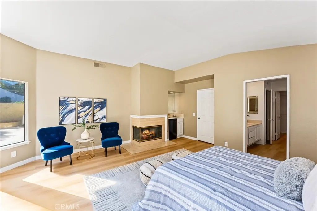 Welcome to this exceptional 4-bedroom, 3-bath home in one of Moreno Valleys finest neighborhoods near the golf course. Perfectly positioned in a quiet cul-de-sac, this property offers the ideal blend of privacy and convenience. Youre just minutes from top-rated schools, parks, shopping, dining, and easy freeway accessmaking day-to-day living incredibly smooth. The main level features a luxurious master suite, and upstairs youll find three additional bedrooms, plus a spacious family room open to a newly refurbished kitchen with brand-new counters and cabinets. The living room boasts soaring high ceilings, and the property includes an oversized three-car garage and ample driveway parking. Outdoors, enjoy a classy paved patio and decorative fountain, perfect for relaxing or entertaining. With no HOA and no Melo Roos, youll appreciate the freedom this home offers alongside serene surroundings, gorgeous yard and a lifestyle that truly checks all the boxes.