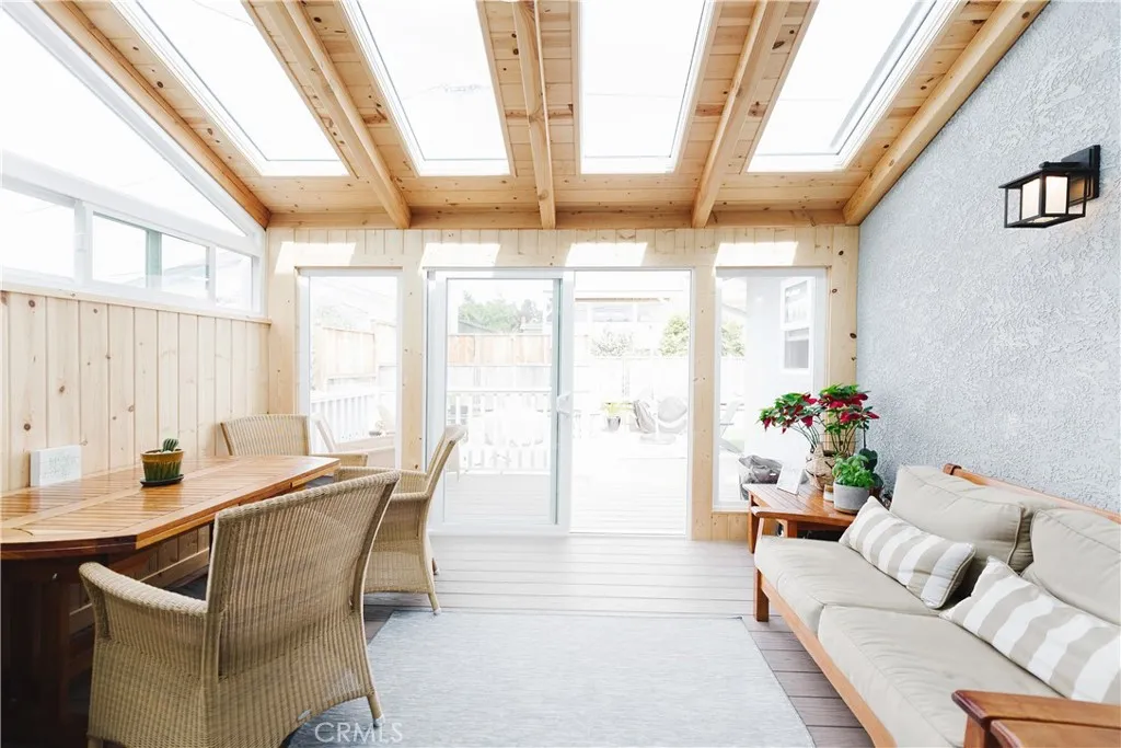 Enjoy iconic views of Morro Rock and the ocean from this top to bottom fully renovated move-in ready home in prestigious Morro Heights. This home features a main-level primary suite and 3 more bedrooms upstairs, with a total of 2.5 baths. The walls of glass and beautiful Andersen sliding French wood doors in the dining area allow for views of the ocean from the chefs kitchen. The deck off the kitchen and dining is perfect for morning coffee and evening cocktails while you take in the views. The kitchen includes custom cabinetry, Viatera countertops, a KitchenAid 5 burner induction cooktop, Sub-Zero refrigerator, and other top of the line appliances. The living room is centered around the custom-tiled fireplace and is open to the dining area, creating the perfect entertaining environment. The flooring is a beautiful real wood Mediterranean Cannes hardwood throughout the entire house. Around the corner from the living room is the cozy family room with custom wood built-in desk and direct access to the sunroom / bonus area and backyard. The large main-level primary suite features vaulted ceilings and exposed beams, as well as a sitting area. The wood beam carries into the primary bath with dual Cambria Quartz counters and built-in bathtub, custom tile shower and radiant heated floors. The 3 good sized-upstairs bedrooms also offer views as well as wood flooring and ceiling fans. One upstairs bedroom is soundproofed professionally with custom built-in cabinetry and can be used as a music studio, entertainment room or yoga space. The upstairs bathroom is well-appointed and also h