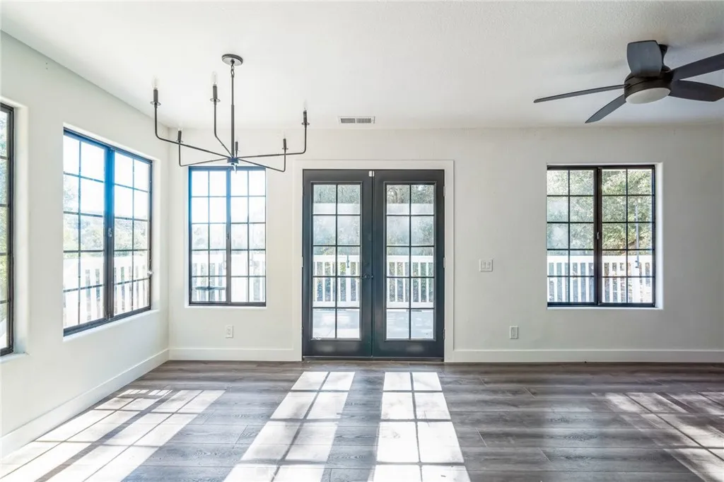 Welcome to this beautifully upgraded 5-bedroom, 3- bathroom home within the serene surroundings of the Cleveland national forest. Tucked away in the sought out La Cresta community, this hidden gem offers the ultimate in privacy. With over $285,000 in recent upgrades, the property showcases stunning double entry doors, durable vinyl plank flooring, sleek black fixtures, and fresh paint inside out. The kitchen is designed to delight both chefs and entertainers alike, featuring a spacious island ideal for meal prep or gatherings with friends and family, a walk-in pantry for effortless organization, stainless-steel appliances, and a 5-burner cooktop for efficient cooking. On the main floor, you'll find 3 bedrooms and 2 baths, along with access to an inviting upstairs loft- perfect for a home office, bonus room, or guest retreat. The lower level includes 2 additional bedrooms, 1 bath, and direct access to a 3-car garage. Set on an expansive 10-acre lot adorned with oak trees, natural meadows, and a seasonal creek, this property is a rare find. Don't miss the chance to make it your own and experience this extraordinary setting firsthand. Oh, and there's NO HOA on this property.