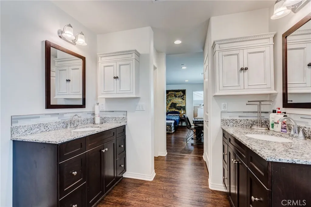 Gorgeous Model Perfect Murrieta 5 Bedroom Home (possible 7 bedrooms) with Private "Pool Size" Yard backing to Open Space for Serene Views and PRIVACY, No neighbor behind this home! Location, Location, Location! NO HOA, OWNED SOLAR. This Exceptional Home has lots of Natural Lighting and has been Professionally Landscaped and Features a Formal Entry, 5 Large Bedrooms, Main Floor Bedroom & Full Bathroom, Main Floor Den/Office (possible 6th bedroom), Large Loft (possible 7th bedroom), plus Expansive Great Room with Spacious Living Room, Kitchen, Dining Area and Luxury Vinyl Plank Flooring Throughout the entire house! The Open Concept Kitchen is an Entertainers Dream with Upgraded Cabinets, Granite Counters, Custom Tile Back Splash, Stainless Steel Appliances, Impressive Island with extra storage and seating! The Walk in Pantry has Custom Built-ins for all your storage needs. The Luxurious Master Bedroom has a Large En Suite Bathroom with Large Soaking Tub, Walk in Shower, Double vanity, Walk in Closet with Custom Built-in Organizers. All additional Guest Rooms are Very Large and have Custom Built-in Closet Organizers and All bathrooms have Upgraded Tile and Cabinets. The Cozy Loft is an added bonus and could be a 7th bedroom! The Great Room and Dining Room have 3 Sets of French Doors that lead out to the "Private " Back Yard that has been Professionally Landscaped with a Large Custom Patio, Insulated Aluminum Patio Cover, Remote Controlled Sun Shades, Custom Pavers, Custom Lighting, Fountains, Vibrant flowers, Plants, Trees. This Meticulously Maintained Yard is VERY Private, ba