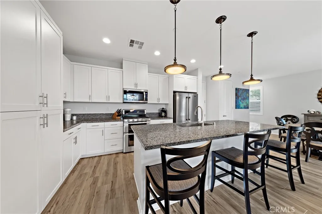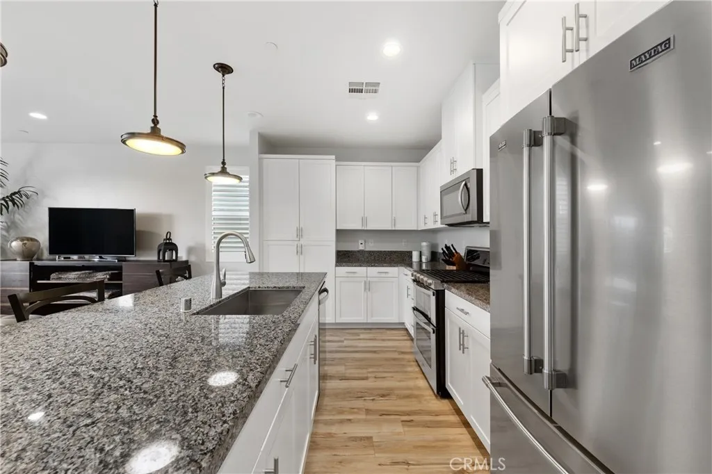 Welcome to your slice of Wine Country paradisewhere comfort, style, and privacy come together in this beautifully upgraded TURNKEY 3-bedroom, 2.5-bath home with a spacious loft in the highly desirable Callistoga at the Promontory community. Backing to a peaceful natural hillside and showcasing a stunning landscaped backyard, this move-in-ready home offers the perfect blend of tranquility and indoor-outdoor living. This exceptionally well cared for 1,864 sq ft residence, built in 2018, features Cortona Argamasa laminate flooring, berber carpet, plantation shutters, ceiling fans, and custom solar shades. The open-concept layout seamlessly connects the kitchen, dining, and living areas, while oversized sliding glass doors fill the space with natural light and highlight the backyard retreat. The kitchen is a standout with white shaker cabinetry, granite countertops, stainless steel appliances, pendant lighting, and an oversized island with seating. Upstairs offers spacious secondary bedrooms, a shared bath with dual sinks and upgraded Powder to Piedrafina counters, and a private primary suite with dual vanities, soaking tub, and separate shower. The versatile loft provides ideal flex space for an office, guest room, or media area. An upstairs laundry room adds convenience with White Matte Cultured Marble counters, shaker cabinetry, and an upgraded Maytag washer and dryer. Additional highlights include a Nest thermostat, Rinnai tankless water heater, LifeSource water filtration system, Aladdin Connect garage access, epoxy garage floors, overhead SafeRacks storage, rain gutters,