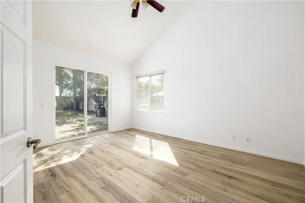 HUGE PRICE REDUCTION! WELCOME HOME Turnkey & Beautifully Updated! This charming two-story single family residence, offers 2,699 sq. ft. of upgraded living space with 4 bedrooms and 3.5 bathrooms, all in move-in ready condition. Step inside to a light-filled entryway with vaulted ceilings and a formal living and dining room featuring plantation shutters and large windows for abundant natural light. The kitchen includes stainless steel appliances, double oven, granite countertops, backsplash, and bar island with dual sink, and a spacious walk-in pantry. The kitchen flows seamlessly into the expansive great room complete with a cozy fireplaceperfect for entertaining. The primary bedroom offers direct access to the backyard through a private door, is located on the main floor, with soaking tub, separate shower, dual vanities, and a walk-in closet with mirrored doors. Two additional guest bedrooms and 1.5 bathrooms are also located downstairs. Upstairs, you'll find a private fourth bedroomcomplete with its own full bath and closetmaking it an ideal second primary suite or guest retreat. Enjoy a large open loft overlooking the main living areasideal for a game room, home gym, or media center. A bonus nook with a window offers the perfect space for a home office or study area. Recent upgrades include wood plank flooring, fresh interior paint, and updated lighting and fixtures throughout. Step outside to a fully landscaped backyard featuring mature trees, a covered patio, no neighbor behind, concrete rear fencing for added privacyideal for outdoor relaxation or entertaining. The w
