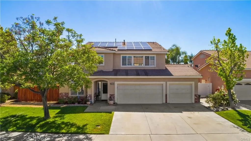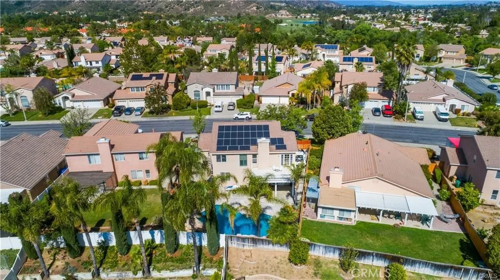 *** SOLAR PAYOFF AVAILABLE *** Welcome to your dream home! This beautifully upgraded 4-bedroom, 3-bath residence offers an open, inviting layout with a spacious bonus roomperfect for a home office, game room, or private retreat. Throughout the home, youll find custom window shutters, dual-zone central AC, and a cozy gas fireplace that create the perfect blend of comfort and style. The chefs kitchen is the heart of the home, featuring a massive island with Corian countertops, a Sub-Zero refrigerator, brand-new stainless steel appliances, and a built-in water filtration systemideal for entertaining and everyday living. Upstairs, unwind in the luxurious primary suite, complete with a private lounge area, a large balcony with sweeping mountain views, and an elegant en-suite bath offering dual sinks, a glass-enclosed shower, and a relaxing soaking tub. Step outside to your own private oasisa resort-style backyard with a sparkling pool and rock slide, a soothing spa, and plenty of space for gatherings under the California sun. Additional features include a 3-car garage and an oversized driveway with ample parking for guests or recreational vehicles. Homes like this dont come around oftenschedule your private showing today and experience the beauty of Copper Canyon living for yourself!