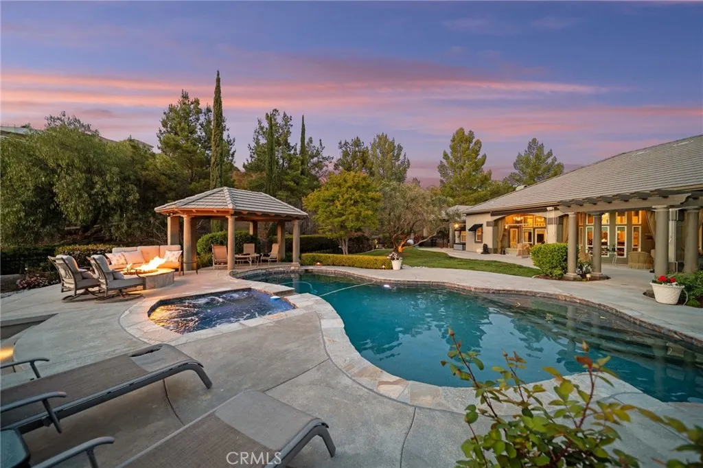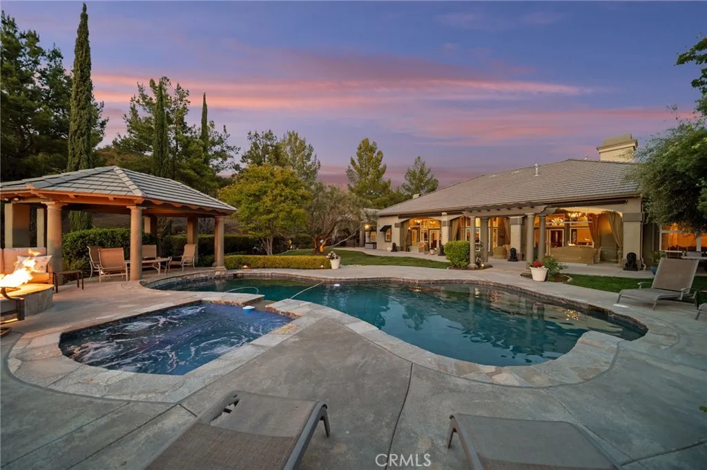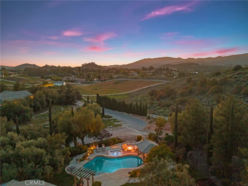 Welcome to 38565 Celine Cove where you get TWO homes on a 5 acre lot A Private La Cresta Estate with Exceptional Craftsmanship! Situated just minutes from the front entry of La Cresta. This exquisite 5-acre estate offers the perfect blend of luxury, functionality, and privacy. Spanning approximately 6,800 square feet, the main residence is a testament to quality construction and thoughtful design. Soaring 12-foot ceilings, crown molding, and commercial-grade glass doors define the expansive interiors, which include 4 spacious bedrooms, 2 fireplaces, and an executive office ideal for working from home. The chefs kitchen is equipped with a Bosch induction cooktop, KitchenAid refrigerator, and reverse osmosis system, making it as functional as it is elegant. The home also boasts 4 air conditioning units, an enclosed sunroom with A/C, and a paid solar system with battery backup for energy efficiency. Step outside into a backyard oasis featuring a pebble tech saltwater pool, outdoor fire pit, and lush landscaping framed by mature treesincluding lemon, orange, pomegranate, pear, and apple. You get TWO 3-car garages, AS WELL AS one enclosed RV parking with generous storage for your oversized collectibles. Let's not forget about the 2,400 square foot guest house, complete with soaring vaulted ceilings, an enclosed sunroom, 2 large bedrooms, a full kitchen with granite counters, and an oversized garage with an enclosed RV bayall constructed to the same exacting standards as the main home. This private estate features an electric gated entry, offering security and seclusion just 10