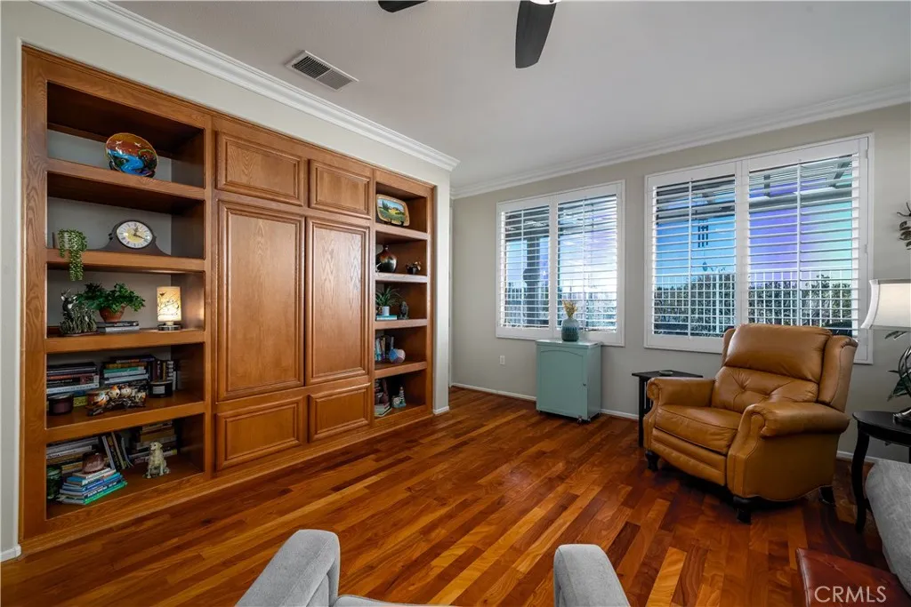 Welcome to 39523 Sierra Madre Dr, a Turnkey, Move In Ready home with a View located in Four Seasons Murrieta 55+ Active Retirement Community. Located just across the street from The Lodge, this home is the Traditional 3 Floor Plan, with 3 bedrooms, 2 bathrooms, and 2,289 sqft of living space. Lots of upgrades noticeable in the home completed in 2023. Luxury Vinyl Plank (LVP) flooring in the Living Room, Dining Room, Bedrooms, and Bathrooms and Wood flooring in the Kitchen and Family Room. The whole house was painted in 2023 with new hinges and door knobs added and hardware added to the cabinets. The kitchen has granite counters, pull out drawers, new stove, new microwave, new dishwasher, new stainless steel sink and fixtures. The Laundry Room utility sink was also replaced and has new fixtures. Plantation shutters throughout and Crown Molding and Upgraded Baseboards through most of the home. Ceiling fans added to the living room, family room, primary bedroom, and guest bedroom. The Primary Bathroom has new toilet, sink fixtures, mirrors, and light fixtures. The 2nd bathroom has new vanity, mirror, toilet, sink fixtures, and light fixtures. The 3rd bedroom is currently set up as an office, but does have added closet. The windows throughout the home are tinted and have sun blocking screens with automated sun shade for the living room window. There is also storage cabinets in the garage, soft water system, and recirculating pump on the water heater. The back yard is low maintenance with Vinyl Fencing and Alumnawood patio cover and is elevated with great sunset views! This home