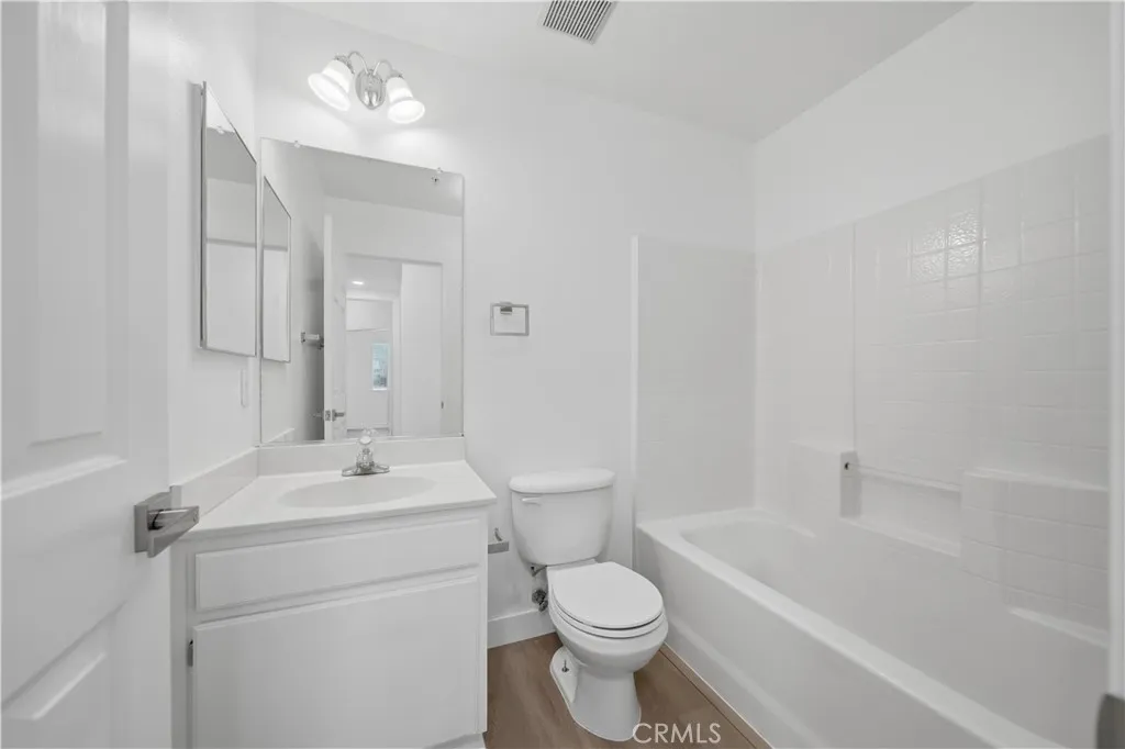 Welcome to Villas at Old Schoolhouse, a gated community in Murrieta. This thoughtfully renovated Townhome offers a bright, open layout with abundant natural light and a comfortable flow ideal for both everyday living and entertaining. The home has been refreshed throughout, featuring new luxury vinyl plank flooring on the main level and in the upstairs bathrooms, fresh interior paint, updated recessed LED lighting, plantation shutters, and new carpet on the stairs, hallway, and bedrooms. The kitchen offers a clean, functional layout with refinished cabinetry, tile countertops, updated faucet, and included refrigerator, opening to the dining area and family room with a cozy gas fireplace. A highly desirable downstairs bedroom and full bathroom provide flexibility for guests, multi generational living, or a home office setup. The downstairs laundry room and attached two car garage add to the homes overall convenience. Upstairs, the spacious primary suite features a large walk in closet and an ensuite bathroom with dual sinks and a separate tub and shower area. Two additional bedrooms share a well appointed hall bathroom, and the upstairs landing includes extra linen storage along with a versatile alcove that can be used as a workspace, study area, or play space. Situated on a corner location, the home also offers a private enclosed backyard, perfect for relaxing or entertaining with minimal maintenance. The gated community features pools, a playground, and open green spaces, all centrally located near shopping, dining, top rated schools, and convenient freeway access. This ho