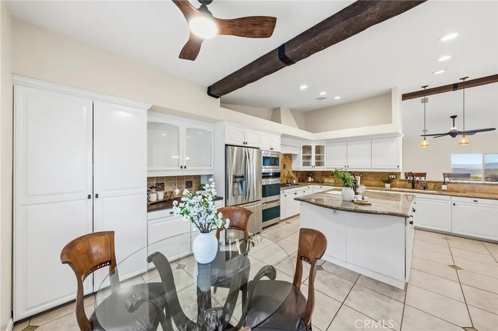 Experience peaceful La Cresta living in this beautifully maintained single-story Mediterranean home, perfectly positioned to take in sweeping mountain and city-light views. From the moment you walk in, the open floor plan, vaulted ceilings, wood beams, and natural light create a warm and inviting feel thats ideal for both everyday living and entertaining. The great room features a cozy fireplace and flows effortlessly into the oversized gourmet kitchen, complete with granite countertops and plenty of space for gatherings. The primary suite is privately tucked away on its own wing of the home and offers incredible views along with a spacious, spa-like bathroom. The additional bedrooms sit on the opposite side, giving everyone their own comfortable space. Step outside to a true outdoor oasis. A luxury pool and spa overlook some of the most beautiful views in La Crestaperfect for morning coffee, relaxing afternoons, or sunset evenings with friends. The yard also includes a sunken firepit, built-in BBQ, and an outdoor bathroom, making it a great setup for entertaining year-round. The 5.84-acre property is thoughtfully laid out with mature citrus treesorange, lemon, and limealong with a small avocado grove. Theres plenty of room for horses, a barn, workshop, guest house, or simply enjoying the open space and tranquility.