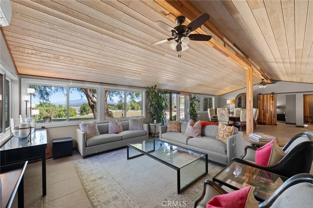Summerland Ranch... where the views reign supreme. Set on 10+ acres on Murrietas coveted West Side, this private retreat blends outdoor living, agriculture, and functionality. Ideal for equestrians, gardeners, homesteaders, and livestock, the property features 71 producing orange trees along with lemon, avocado, guava, fig, apple, pear, loquat, and pomegranate trees, creating a thriving orchard setting. The property includes four structures: two charming cottages each with one bedroom and one bathroom, flagstone patios, cedar siding, corrugated metal accents, tongue-and-groove ceilings, barn doors, tile flooring, mini-split systems, dual pane vinyl windows, and individual water heaters. Additional improvements include a finished open air barn with 2 roll-up doors, stained wood paneling, metal shutters, and stone accents, plus a 5,000 sq ft fully insulated Empire Steel building (50'x100') with loft storage and (2)-16x16 and 16x12 roll-up doors. Fully fenced with 5-ft vinyl rail and woven horse fencing. Utilities include 400-amp electrical service, private septic, private well supported by two elevated 5,000-gallon water storage tanks, and a 4 fire line at the entrance. Property is all-electric with no propane or natural gas. Extensive usable acreage offers potential for expanded equestrian facilities, a family compound, second home, retreat, or additional agricultural use. All structures are permitted and completed. Property is also listed as vacant land listing ID is: SW26056405 Showings by appointment only. Red building photo has been digitally edited to remove items to sh