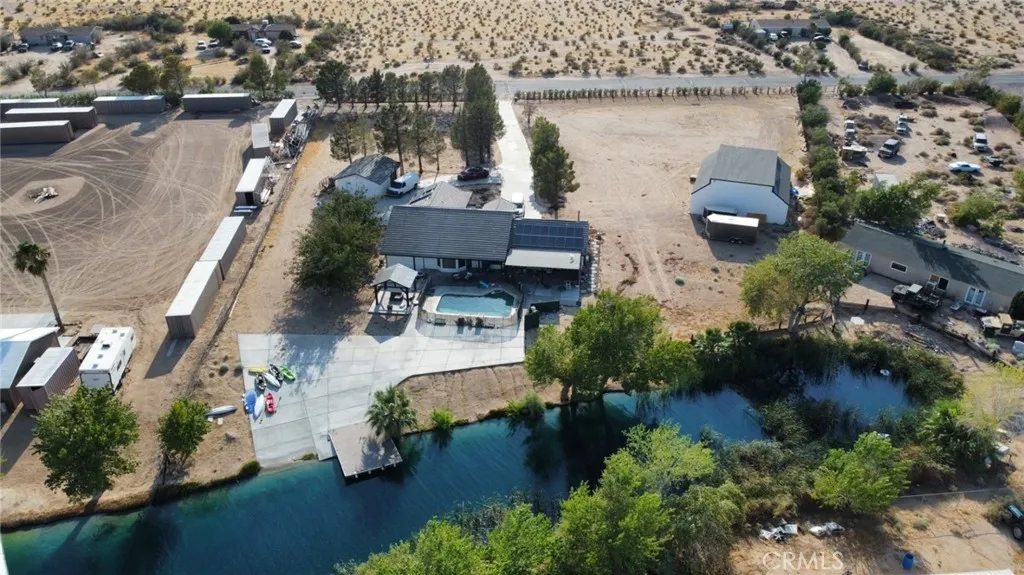 Wake up to water views, wide-open space, and endless adventure. Set on 2.2 acres of prime lakefront land, this rare retreat delivers the perfect blend of comfort, privacy, and outdoor livingdesigned for those who want more than just a home. The 3-bedroom, 2-bath main residence features tile flooring throughout and a beautifully remodeled kitchen with quartz countertops, ideal for entertaining or everyday living. The spacious primary suite offers double walk-in closets, giving you the storage and comfort todays buyers demand. Need room for guests or extended family? The private 2-bedroom, 1-bath guest house (400 sq. ft.) includes split-unit AC/heat and space for a refrigeratorperfect for visitors or a home office. Outdoor Paradise Awaits?This property is built for lifestyle: * Fully fenced in-ground pool * 14x12 gazebo with power and water * Private boat dock and launch for lake days anytime * Open desert land right outside your doorideal for off-road riding and outdoor adventures Bring All the Toys * 45-ft double RV garage with 14-ft doors & 50-amp power * Multiple RV hookups (30 & 50 amp) plus dump station * Two 40-ft storage containers with built-in shelving High-Value Extras Youll Love * Upgraded 200-amp electrical * Paid-off solar system * Electric front gate for security and convenience * Access to a nearby private airstrip for small aircraft * New exterior paint, windows, and move-in ready * Tesla Charger * Extra fencing all around in case you have little ones. This is more than a lakefront homeits a destination, a compound, and a lifestyle investment all in one. Prop