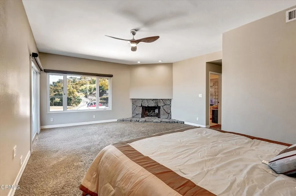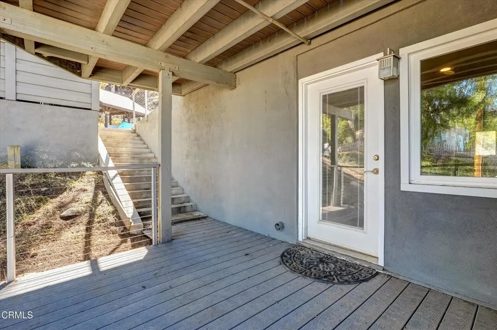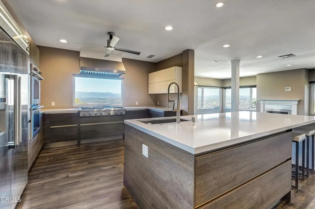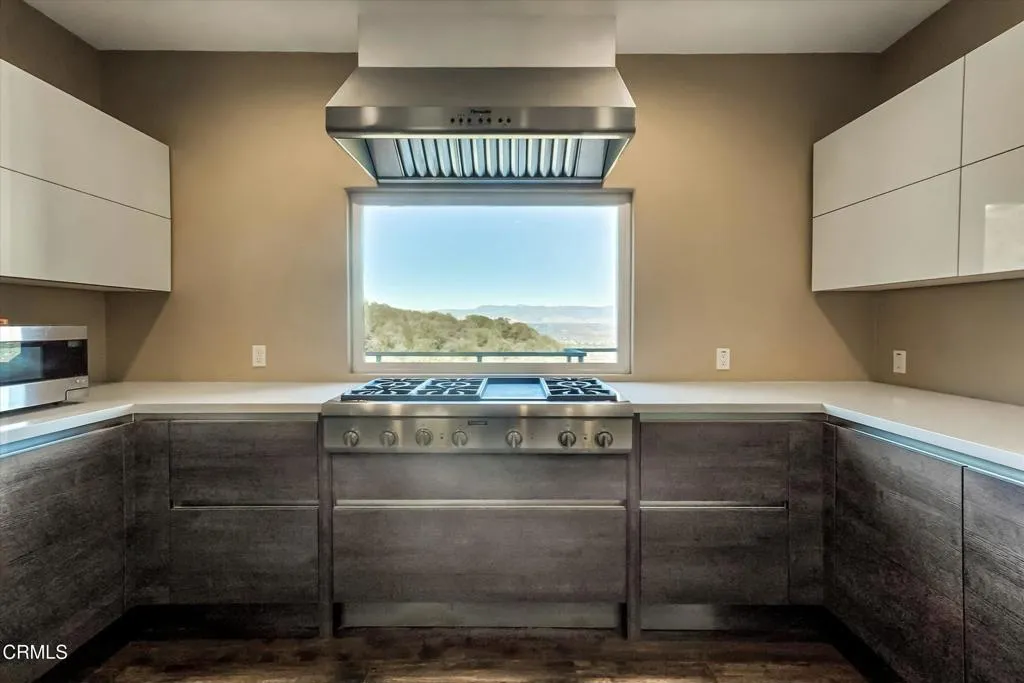 This luxurious 5-bed, 5-bath home offers gorgeous valley views from multiple vantage points. One bedroom features a private entrance, full bath, and side yard. Ideal for multi-generational living and/or ADU conversion. The main level offers an open-concept living-room and dining room with a chef's kitchen, which includes Thermador appliances, European cabinetry, an oversized Silestone waterfall island and fire place. Enjoy an approx. 800 sq. ft. deck with Jacuzzi, a large entertainment room with built-in surround sound, and refined finishes throughout. The oversized master bedroom inclues a private deck and fireplace. Additional highlights include paid solar, 2 tankless water heaters, electric blinds, Milgard windows, zoned Nest thermostats, abundant storage, and a dedicated laundry room. Situated on a private road with an open lot next door offers privacy and seclusion. Top of Line Construction Quality, estimated replacement cost over $2,000,000.00. This is a must see in person! Only 5 minutes to freeway, dining, and shopping. Approximate drive times to Santa Barbara: 50-60 min Los Angeles (Downtown): 45-55 min Burbank: 35-50 min Van Nuys: 30-40 min Woodland Hills: 25-35 min Granada Hills: 30-45 minBuyer to perform their own due diligence regarding permitting, zoning, and ADU requirements. Seller and broker make no representations or warranties regarding the permitting requirements or feasibility of converting any portion of the property into an ADU and total square footage.