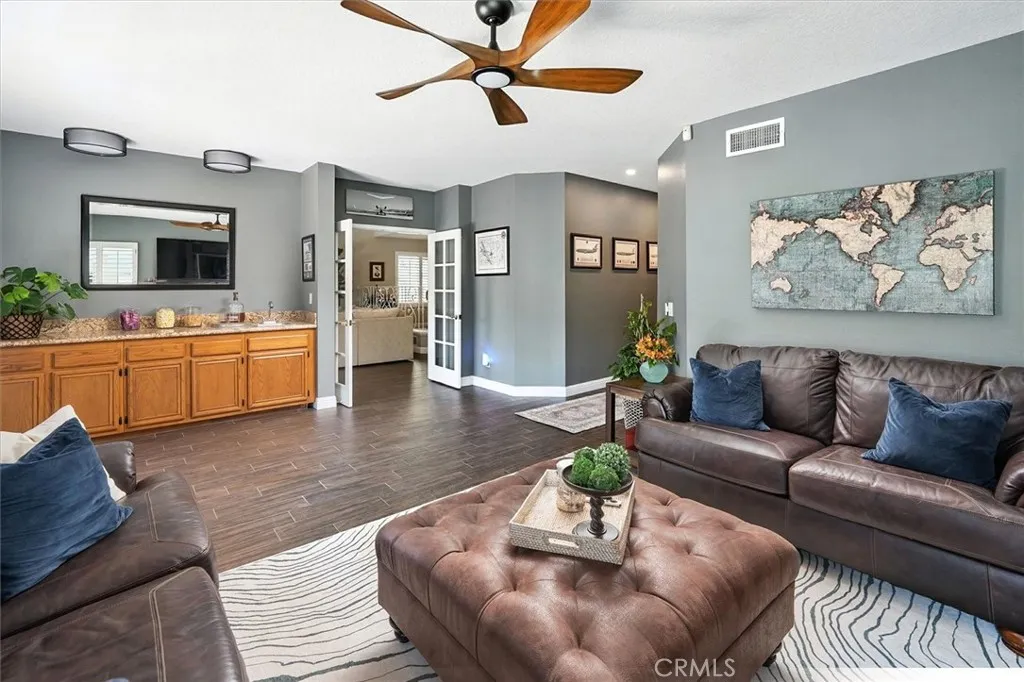 Luxury Meets Comfort in This Updated Multigenerational Hidden Valley Home in Newhall. Imagine 6-bed, 4-bath home has been completely reimagined with upgrades and professionally staged by a designer to showcase its full potential. As you enter the home, the foyer on the main level open-concept layout is anchored by the show-stopping spacious living and dining areas with a private bedroom and full bath, perfect for guests. Family and living rooms have beautiful natural light and french doors lead to the redesigned balcony to sit outside, sip your morning coffee or relax with a glass of wine while taking in the serene views. In 2024, the beautiful kitchen was taken down to the studs and rebuilt with sleek, modern finishes, premium appliances, and an effortless flow that makes entertaining a dream. At the same time, every window in the home was replaced, including a lifetime warranty, enhancing natural light and energy efficiency. In 2025, the transformation continues with new wood-look tile flooring, a striking redesign of the stairs and updated bathrooms, paired with designer lighting that adds warmth and sophistication. For ultimate comfort, the home is equipped with a newer smart HVAC system, featuring a fully automatic, self-cleaning air purification system and an extra year of seasonal maintenance included. Upstairs, the spacious primary suite is a true retreat with a seating area and featuring a remodeled luxurious en suite bath. The lower level, with its own private entrance, perfect for a Nanny or caregiver it offers a full family/game room, plus a bedroom, and full ba