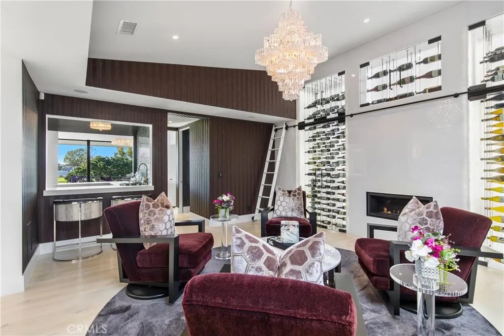 PRICE ADJUSTMENT on this GOLFERS DREAM HOME ON THE 9TH FAIRWAY of the NEWPORT BEACH COUNTRY CLUB - 5 STEPS TO SINGLE LEVEL LIVING VIEW PROPERTY Unparalleled elegance and sophistication in this one-of-a-kind contemporary masterpiece in the prestigious Granville community of Newport Beach. Designed for the ultimate entertainer, this custom-built estate (completed in 2020) offers breathtaking 180-degree panoramic views of the 9th hole at Newport Beach Country Club, extending beyond to the Pacific Ocean and Catalina Island. Meticulously curated over two years, this home embodies entertainment luxury, seamlessly blending refined materials, state-of-the-art technology, and architectural brilliance. Every element has been crafted w/ an unwavering attention to detail, ensuring an ambiance of exclusivity and indulgence. The heart of this residence is its expansive OPEN-CONCEPT LIVING and DINING areas, featuring the NANO WALL SYSTEM, floor-to-ceiling glass doors that open to a sprawling 320+/- sq. ft. outdoor lounge. This home delivers a flawless indoor-outdoor experience complemented by awe-inspiring sunset vistas. CHEF'S DREAM KITCHEN - 10 burner gas cooktop by WOLF - Side by side SUB-ZERO refrigerators, 4 freezer & 4 additional fridge drawers by Sub-Zero - other WOLF appliances include double ovens, microwave, Steam Convection oven, built-in coffee station that includes a cup warming drawer WINE CONNOISSEUR'S HAVEN - the elevated wine room captivates w/ the ALABASTER BACKLIT WINE WALL - 200+/- bottles and 9 magnums LAVISH PRIMARY SUITE - A spacious sitting area w/private exterior