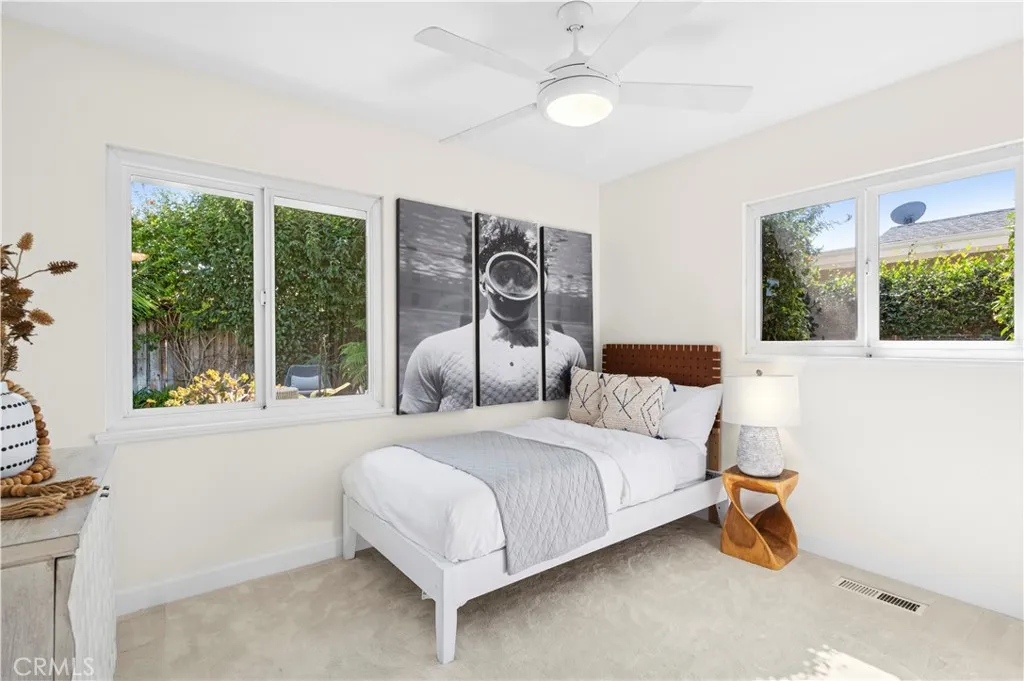 A rare opportunity to reside in one of Newport Beachs most coveted enclaves of Dover Shores area, this charming and sophisticated 4-bedroom residence seamlessly blends timeless character with modern comfort. The main level features three spacious bedrooms and two beautifully appointed baths, complemented by a versatile upper-level bonus suite with an additional bedroom and bath - ideal for a guest retreat, game room, or a creative studio. The front garden is meticulously maintained, showcasing sago palms and flourishing citrus trees, including oranges, tangerines, and limes. A classic Dutch door opens into the tastefully updated kitchen with a marble island, stainless-steel appliances, and formal dining room. An expansive living room centered around a gas wood-burning fireplace with stacked stone and a large hearth, with an organically lit sunroom suited for a private office or gym room. The backyard oasis supplies a refreshing swimming pool, Malibu lighting, and an entertaining area. Additional highlights include luxury vinyl flooring throughout, laundry room, an oversized two-car garage, an expansive driveway, and a generous side yard offering ample space for an RV, small boat, or trailer. Exceptionally located near award-winning schools, the scenic Upper Newport Bay trails, Mariners and Castaways Parks, and the vibrant shopping and dining of 17th Street.