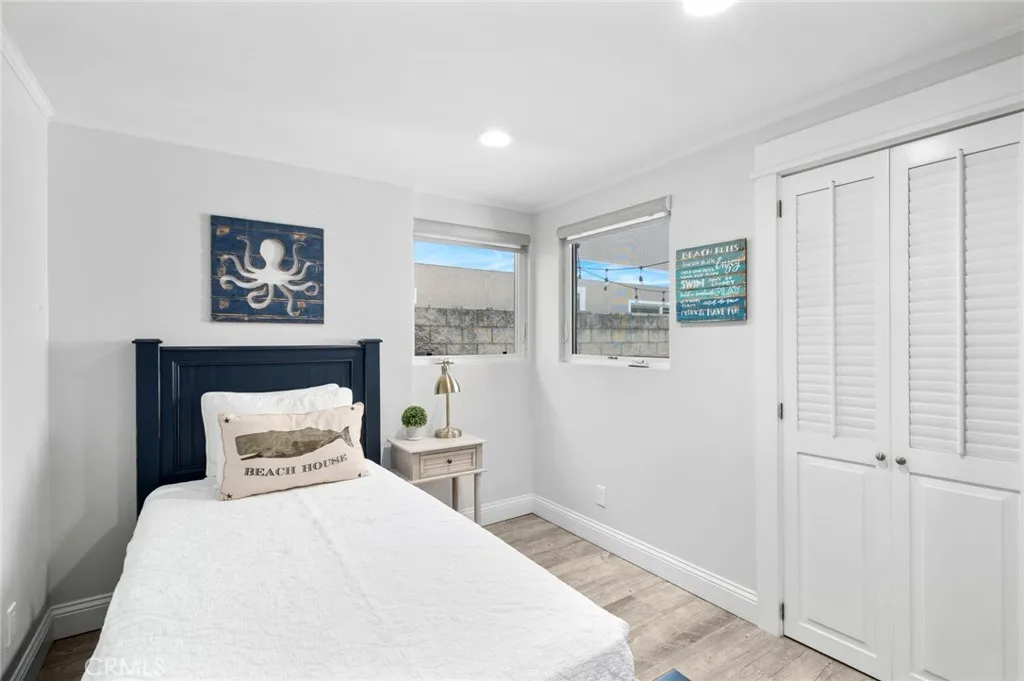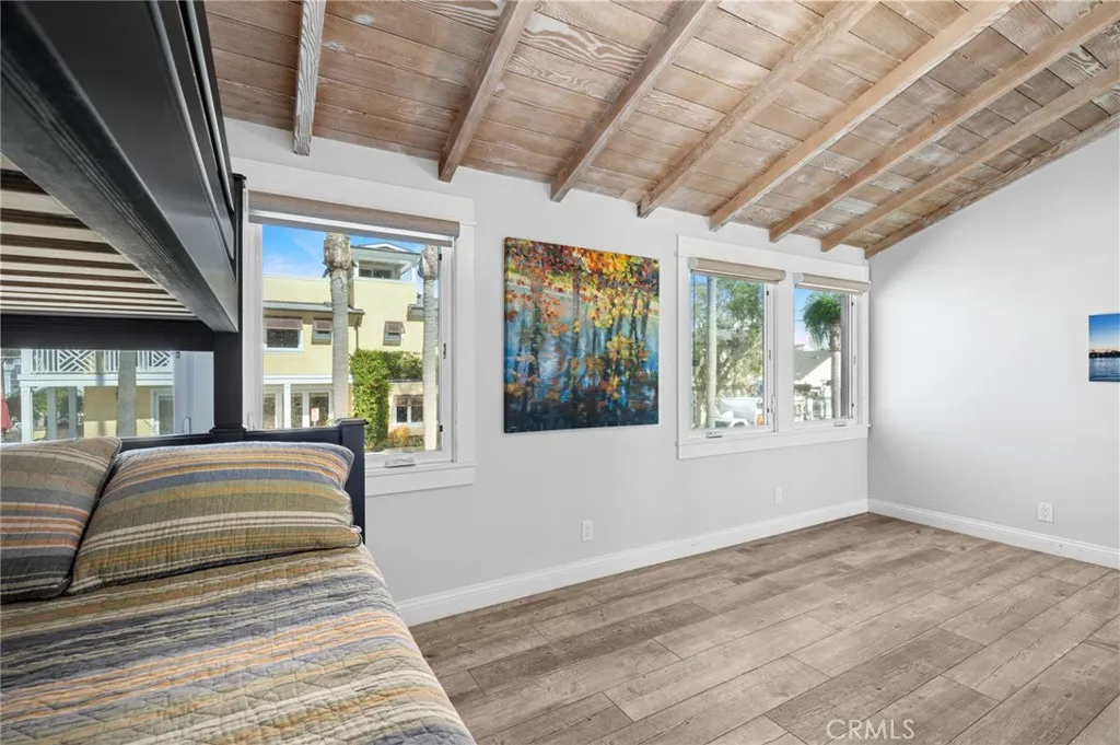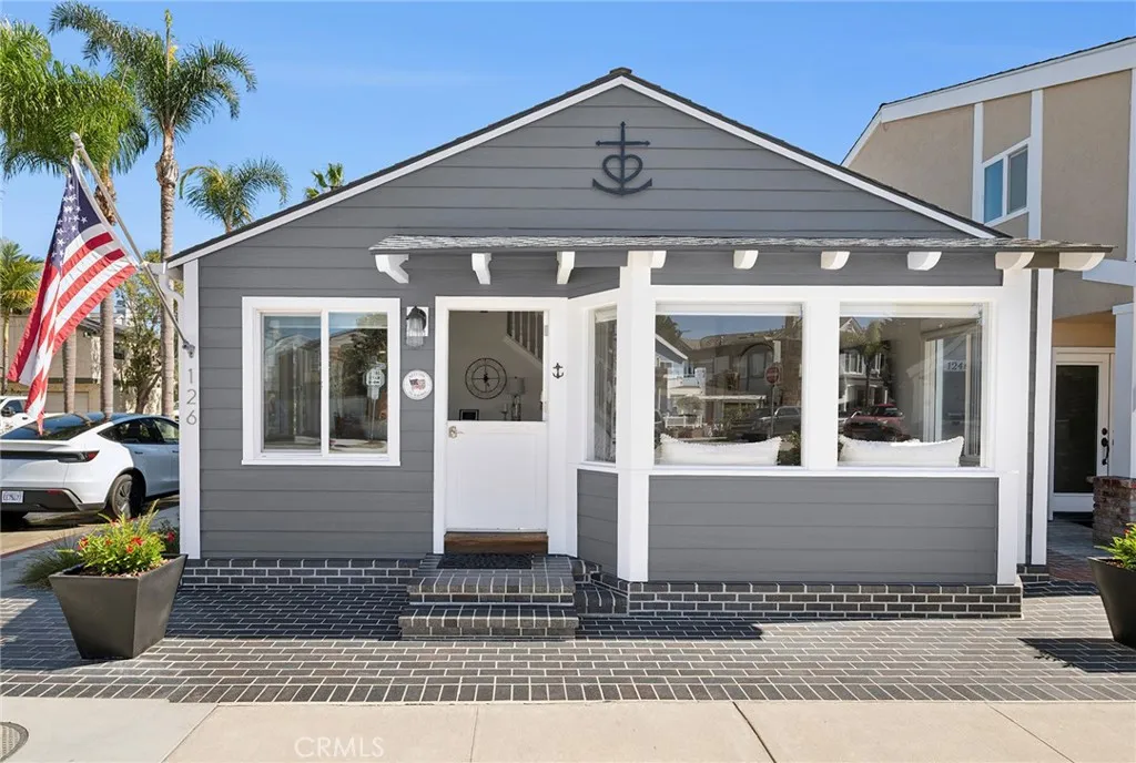 Stunning Balboa Island home perched on a sunny corner, just one block from the South Bayfront. Enter through a Dutch door into the expansive open concept living/dining area. The bright and airy atmosphere is accentuated by 2-story beamed ceilings and a bay window with built-in seating. The deluxe kitchen is a chefs delight with quartz and marble counters and top-quality appliances including a Bertazzoni range. This level of the home also presents a rare first-floor bedroom, along with a 3/4 bath, 2-car garage, and brick-lined side patio running the entire length of the house. The second level showcases an awesome primary suite with gigantic spa-quality bath, sizable closet, and separate sitting room. Completing the upstairs is a guest bedroom with full bath. Additional amenities of this exceptional home blend nautical charm with modern convenience including central A/C, stone tile floors, beamed ceilings on both levels, and first-rate finishes throughout.